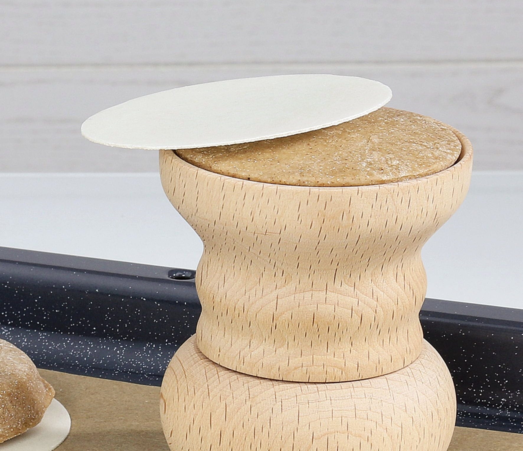 - Enostavna uporaba: Vstavite testo in ga zgladite, rahlo pritisnite na oblat in obrnite model v smeri urinega kazalca. Nato medenjake razporedite neposredno na pekač.