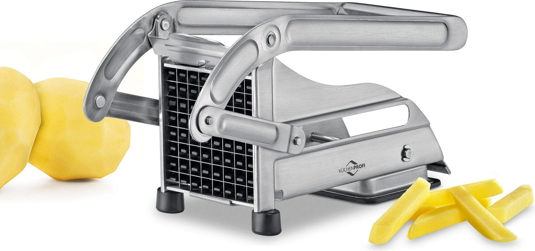 Z domiselno zasnovanim rezalnikom za pomfri znamke Küchenprofi boste zagotovo dobili popolnoma enakomerne, dolge koščke krompirja. Nepogrešljiv pomočnik v vsaki kuhinji, saj se odlično uporablja tudi za rezanje sadja in zelenjave.