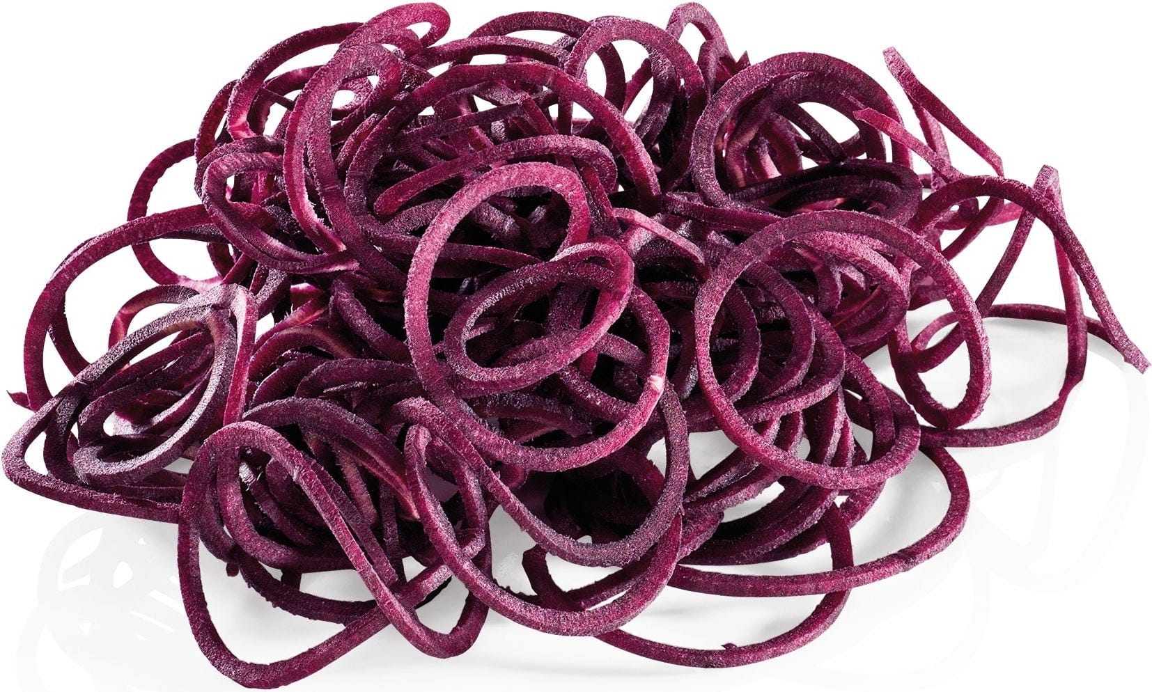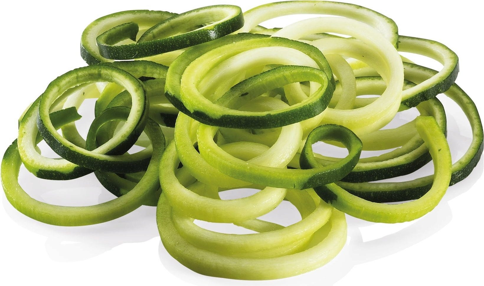 Izjemno ostra rezila praktičnega spiralnega rezalnika znamke Küchenprofi v trenutku spremenijo korenje, bučke, redkvice, kumare itd. v "špagete". Idealna alternativa običajnim testeninam z dodatnim odmerkom vitaminov.
