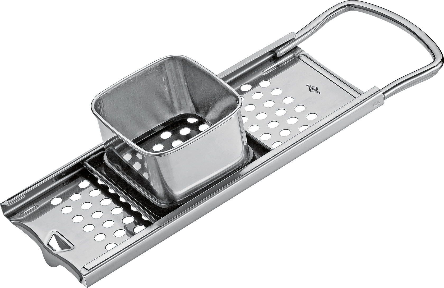 - enostavna uporaba: testo položite v nastavek na strgalu in ga z njegovo pomočjo potisnite čez ribež. Vlivancu nato skozi luknjice padejo neposredno v vročo vodo.