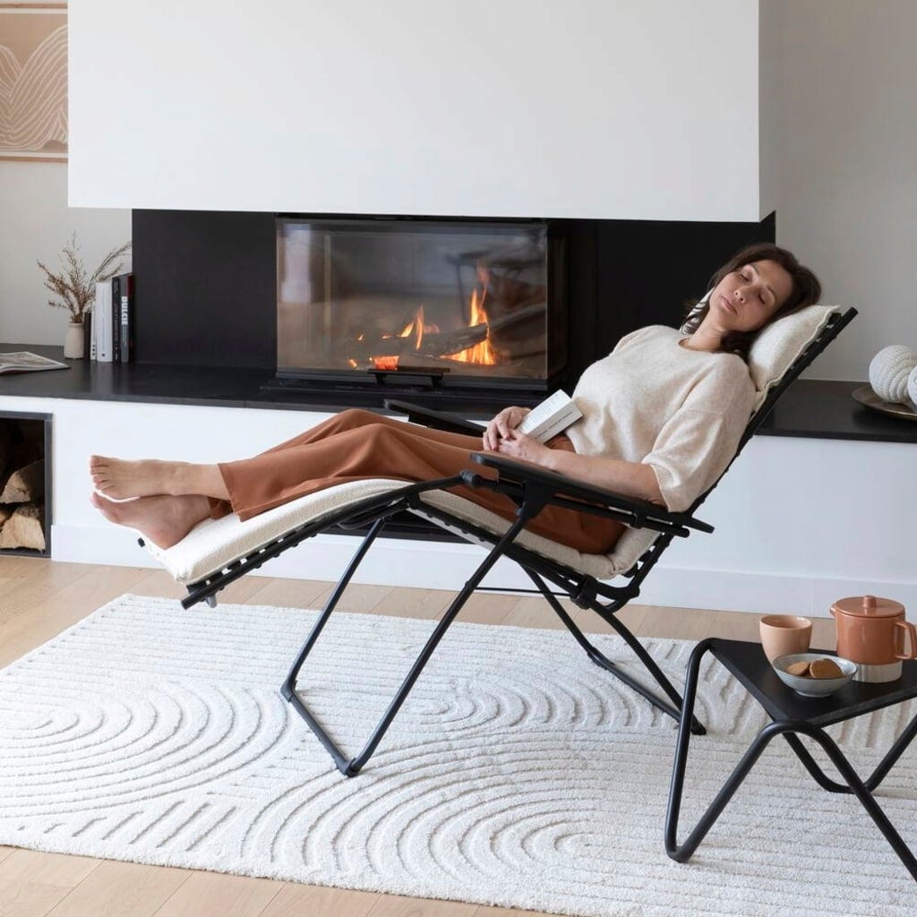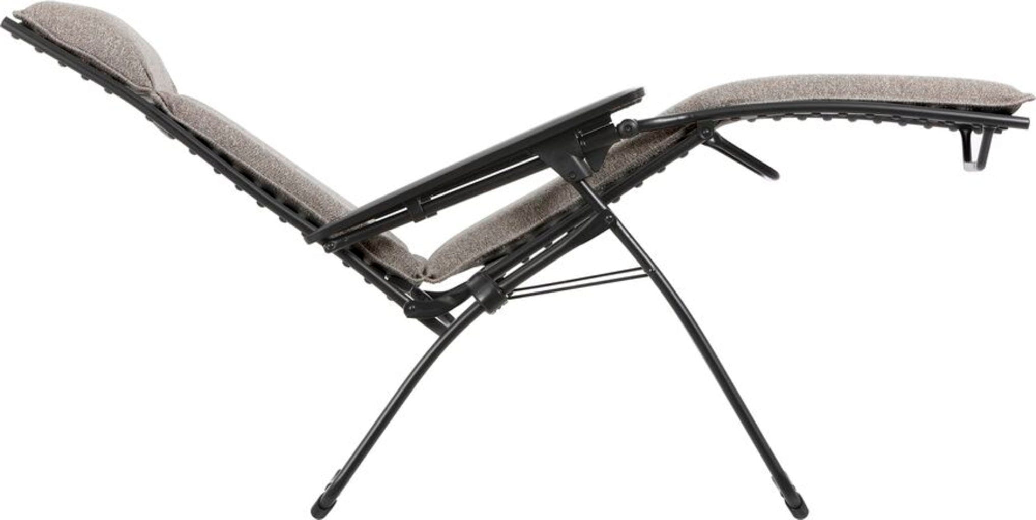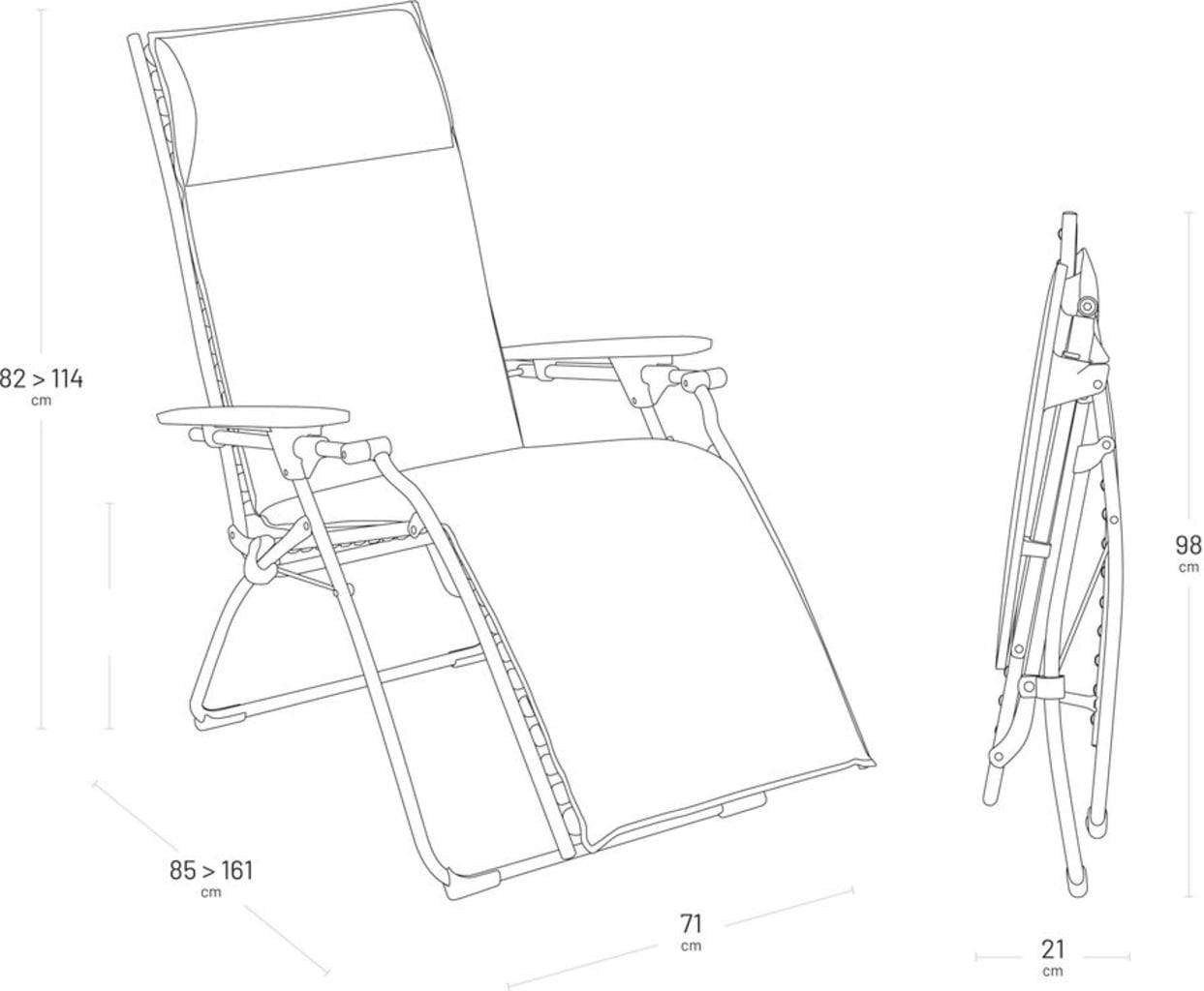 Privoščite si popoln oddih s tem izjemnim naslanjačem EVOLUTION Niksen znamke Lafuma, ki združuje sodobno obliko in maksimalno sprostitev. Zaradi ergonomskega položaja "brez gravitacije" so vaše noge nekoliko nad ravnijo srca, kar vam zagotavlja neprimerljivo lahkoten občutek. V popolnem udobju uživajo tudi visoki ljudje do višine 180 cm.