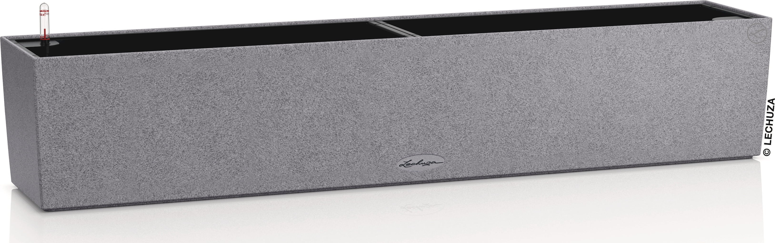 Puristično cvetlično korito "Balconera Stone" znamke Lechuza spretno uprizarja cvetlice s svojo privlačno površinsko strukturo. Poleg tega navdušuje s svojimi praktičnimi lastnostmi, zaradi katerih srce vsakega vrtnarja bije hitreje. Ne glede na to ali so nameščeni prostostoječi ali pritrjeni na balkonsko ograjo z nosilcem (na voljo ločeno)-rastlinsko korito iz polipropilena, odpornega proti UV-žarkom, vedno privlači pozornost.
