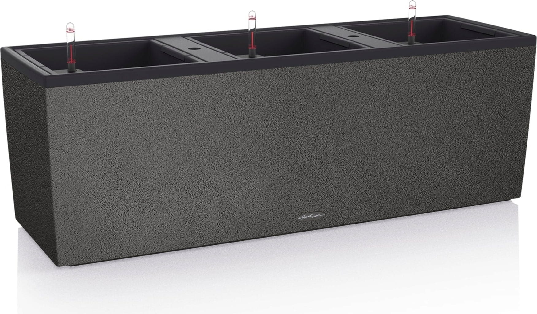 Elegantno korito TRIO Stone 40 navdušuje tako s svojim brezčasnim dizajnom v privlačnem kamnitem videzu kot s pametno notranjostjo. Trije zamenljivi vstavki za rastline, vključno s patentiranim sistemom za zalivanje, so odlična izbira za gojenje sadnih in zelenjavnih rastlin ter okrasnega cvetja. Idealno za vrtove, terase ali večje balkone - kot nizek zaslon za zasebnost, mini visoka greda ali škatla za rože.