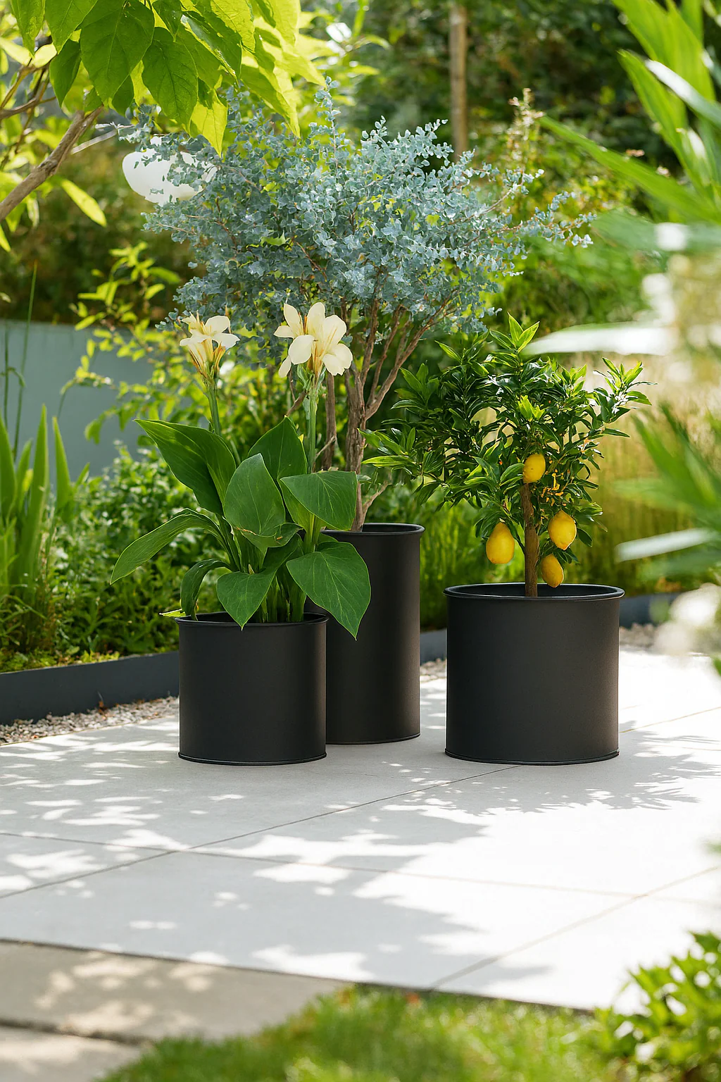 Livlig53 3-delni set kovinskih cvetličnih loncev, antracitna