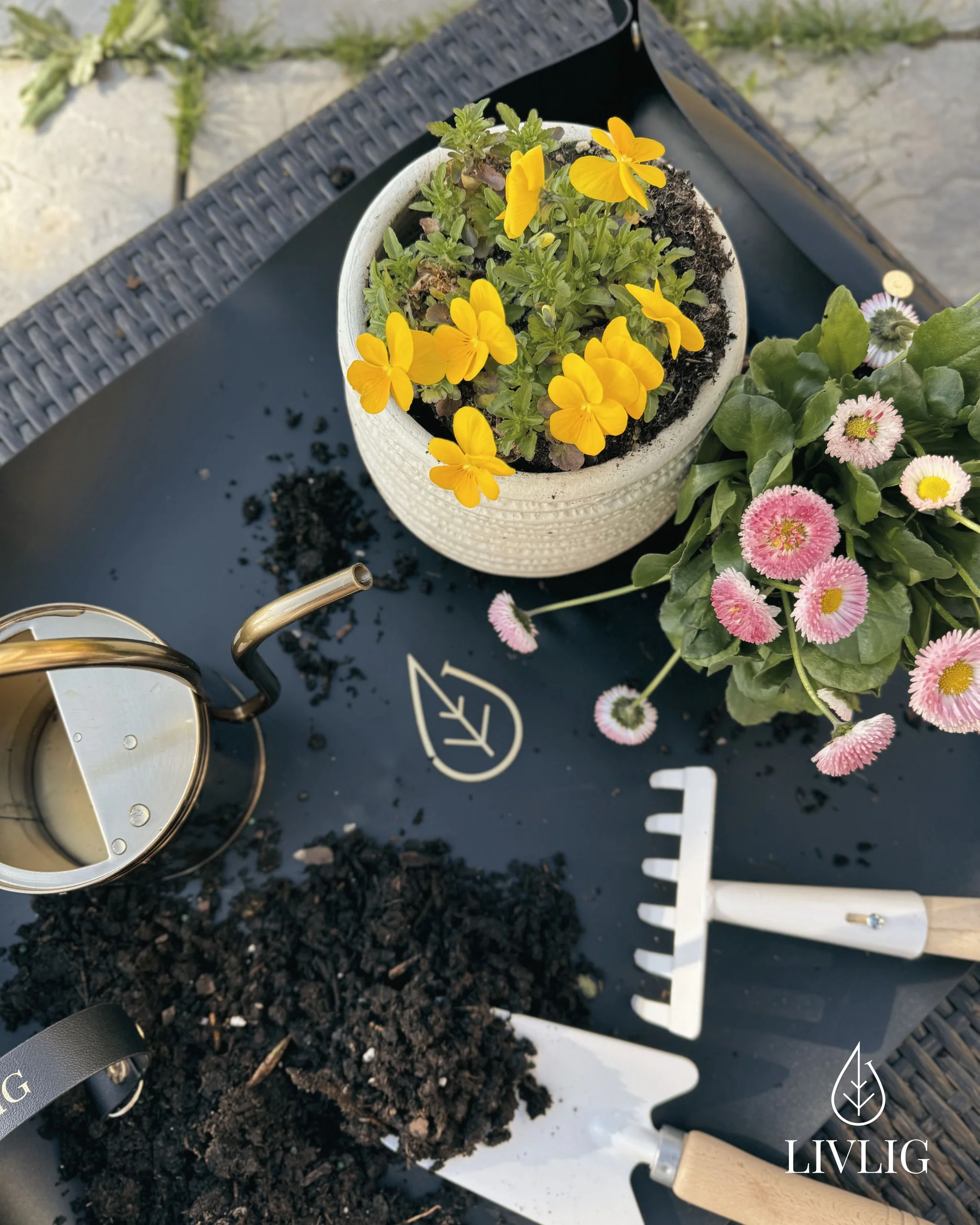 Ta elegantna podloga je idealna podlaga za sajenje in presajanje rastlin v zaprtih prostorih, na balkonu ali na terasi. Visokokakovostni material iz umetnega usnja ima zatesnjene robove, je nedrseč in vodoodbojen. Z magneti na robovih lahko ustvarite dvignjen rob, tako da okolica ostane čista.
