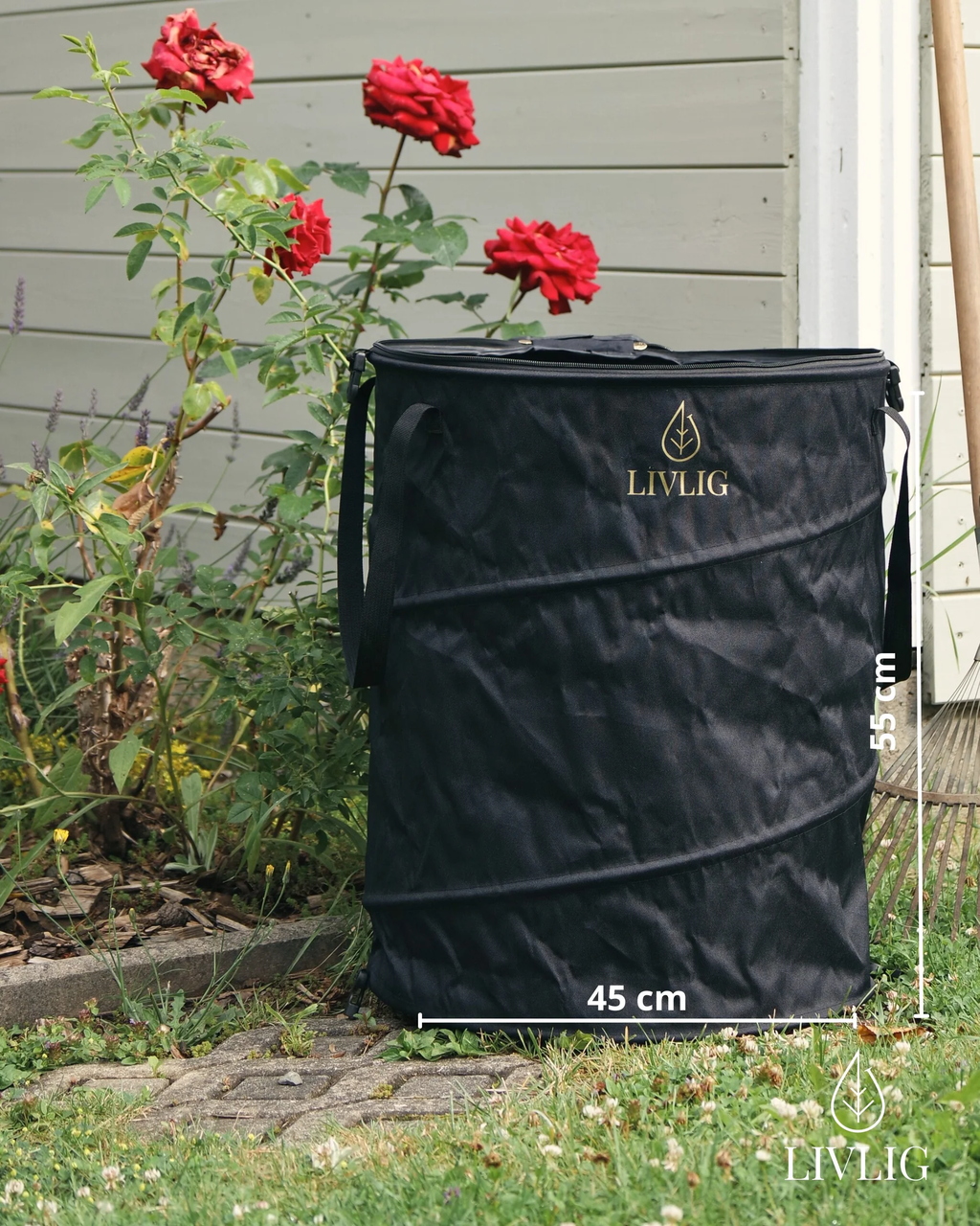 Končno ste našli čas za prekopavanje gredic in odstranjevanje plevela, toda kaj storiti z vsemi vrtnimi odpadki? Rešitev je ta pop-up vrtna vreča! S prostornino 90 litrov ponuja dovolj prostora za listje, veje in vse drugo v vrta. Dvojno ojačano dno zagotavlja dobro stabilnost, trpežna vodoodbojna tkanina pa ščiti vsebino pred dežjem. Ko je vreča polna, jo preprosto zaprite s praktično zadrgo - tako ne bo ničesar odpihnilo in vaš vrt bo ostal čist.
