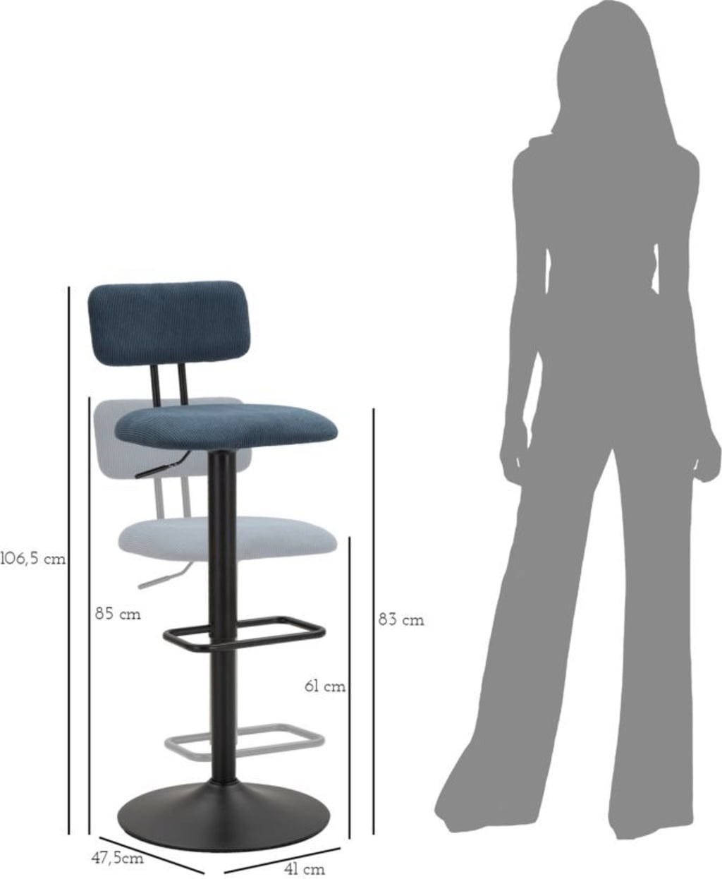 Dimenzije: 41 x 47,5 x 85-106,5 cm (višina sedeža 61-83 cm)