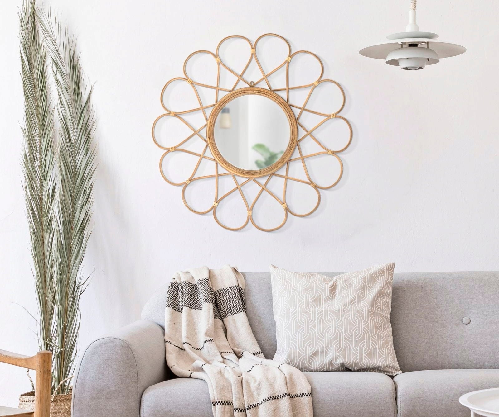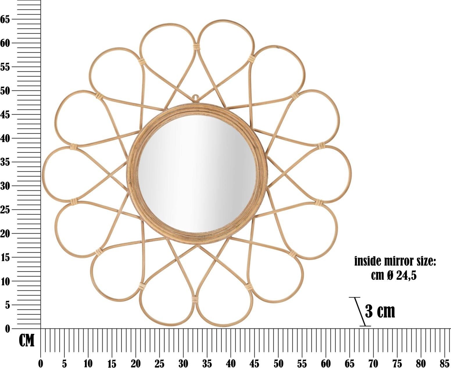 Stensko ogledalo Almeria znamke Mauro Ferretti v vaš dom vnese pridih poletne lahkotnosti. Oblika spominja na odprt cvet, katerega ukrivljeni listi se harmonično stiskajo okoli osrednje zrcalne površine in ustvarjajo čudovito mehak, organski videz. Nežni detajli v videzu ratana na spojih dajejo ogledalu pristen, naraven značaj in poudarjajo njegov prijeten boemski slog.