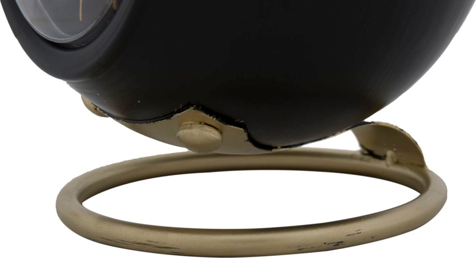 Ball Nero namizna ura znamke Mauro Ferretti je eleganten element za pisalno mizo, kredenco ali nočno omarico. Za to uro je značilna nenavadna oblika z mehkimi, zaobljenimi linijami, ki ji dajejo harmoničen in sodoben videz. Sferično, temno črno telo podpira elegantno kovinsko podnožje zlate barve, ki zagotavlja stabilnost in razkošen kontrast.