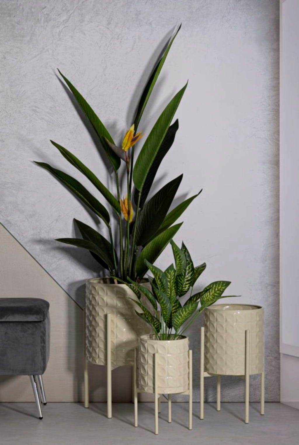 S tem kompletom treh cvetličnih loncev dajte svojemu prostoru eleganten in naraven pridih! Ta komplet je prava paša za oči, saj se ponaša z drznim, modernim slogom, ki v trenutku poživi vsak prostor. Robustni kovinski lonci navdušujejo s svojim subtilno sijajnim zaključkom in so nameščeni na vitka, visoka stojala.