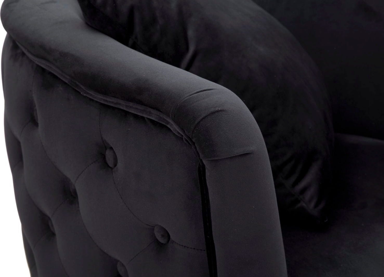 S tem elegantnim oblazinjenim foteljem dajete svoji sobi eleganten pridih in maksimalno udobje. Prevlečen je z razkošno črno velur tkanino. Zahvaljujoč svoji prostorni obliki in udobnima naslonjaloma za roke ponuja idealen prostor za sprostitev.