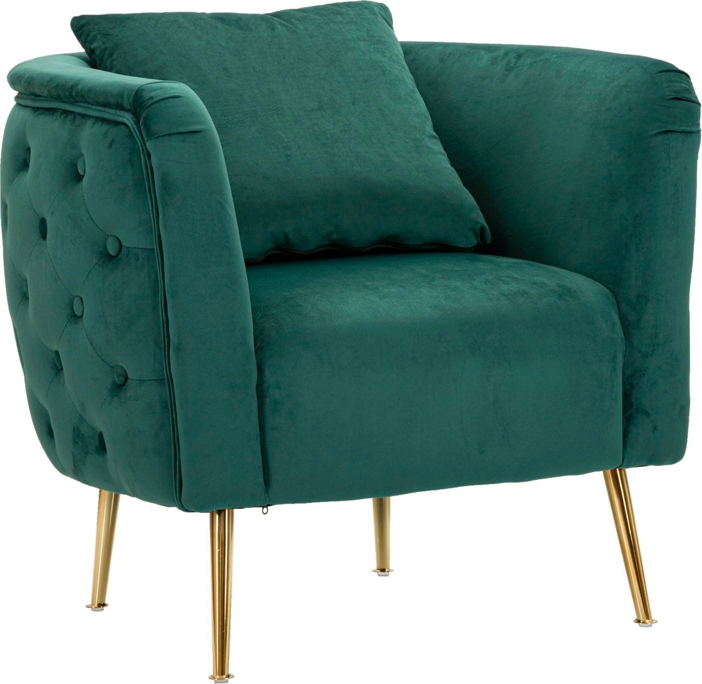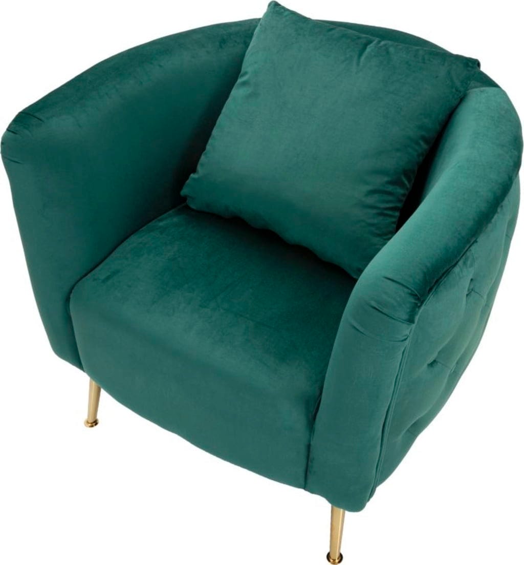 S tem elegantnim oblazinjenim foteljem dajete svoji sobi eleganten pridih in maksimalno udobje. Prevlečen je z razkošno zeleno velur tkanino. Zahvaljujoč svoji prostorni obliki in udobnima naslonjaloma za roke ponuja idealen prostor za sprostitev.