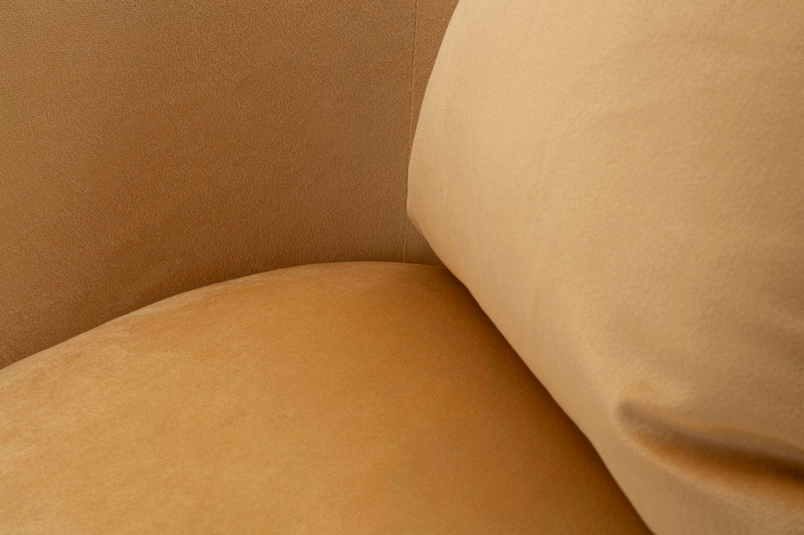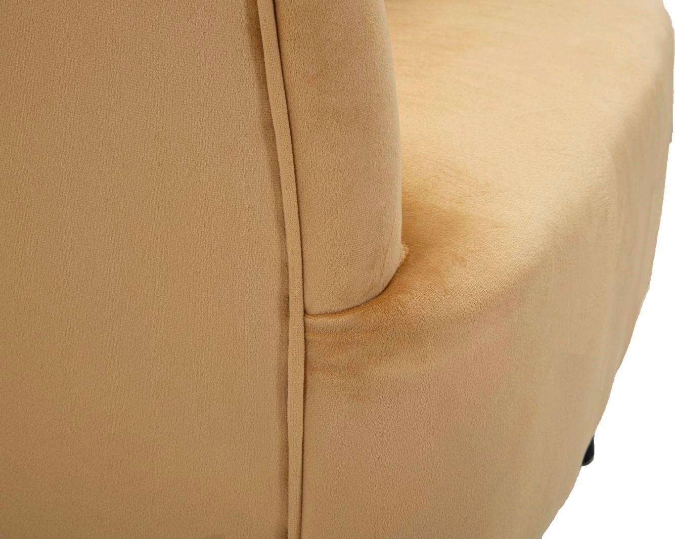 S tem elegantnim foteljem boste sobi dodali neustavljiv pridih sodobnega razkošja in maksimalnega udobja. Širok, vabljiv fotelj navdušuje z mehko, žametno prevleko v toplem oker odtenku, ki vaši notranjosti takoj vdahne prijetno, a prefinjeno vzdušje.