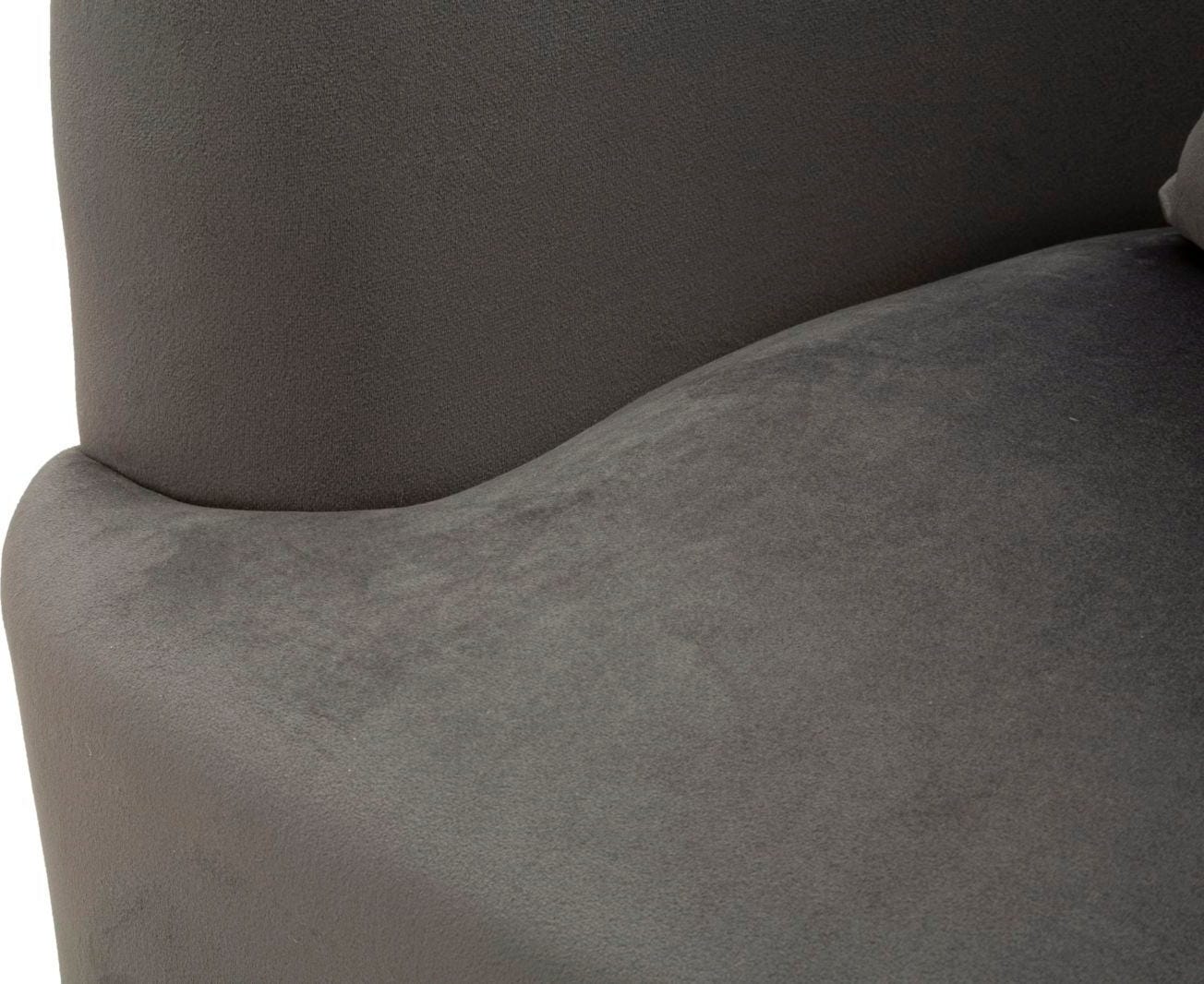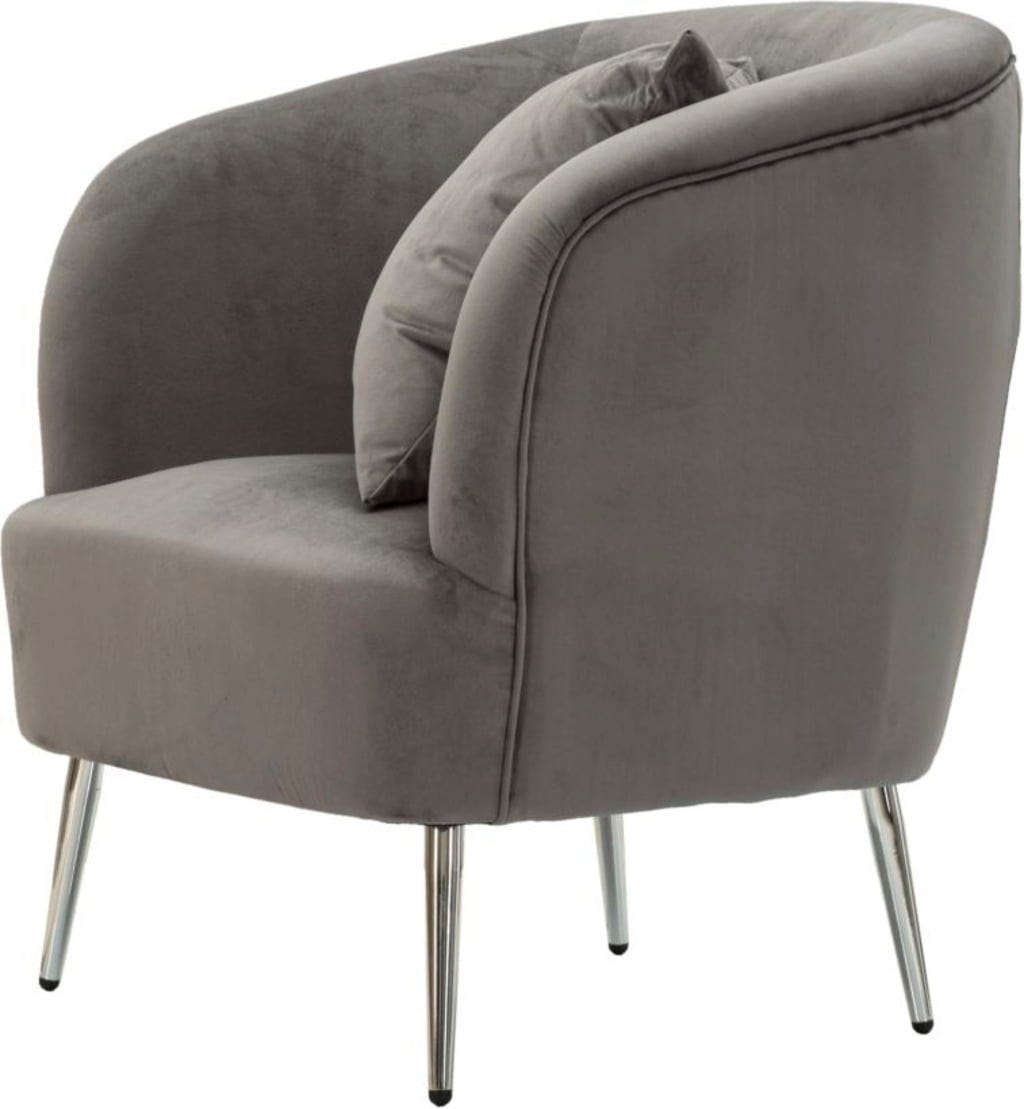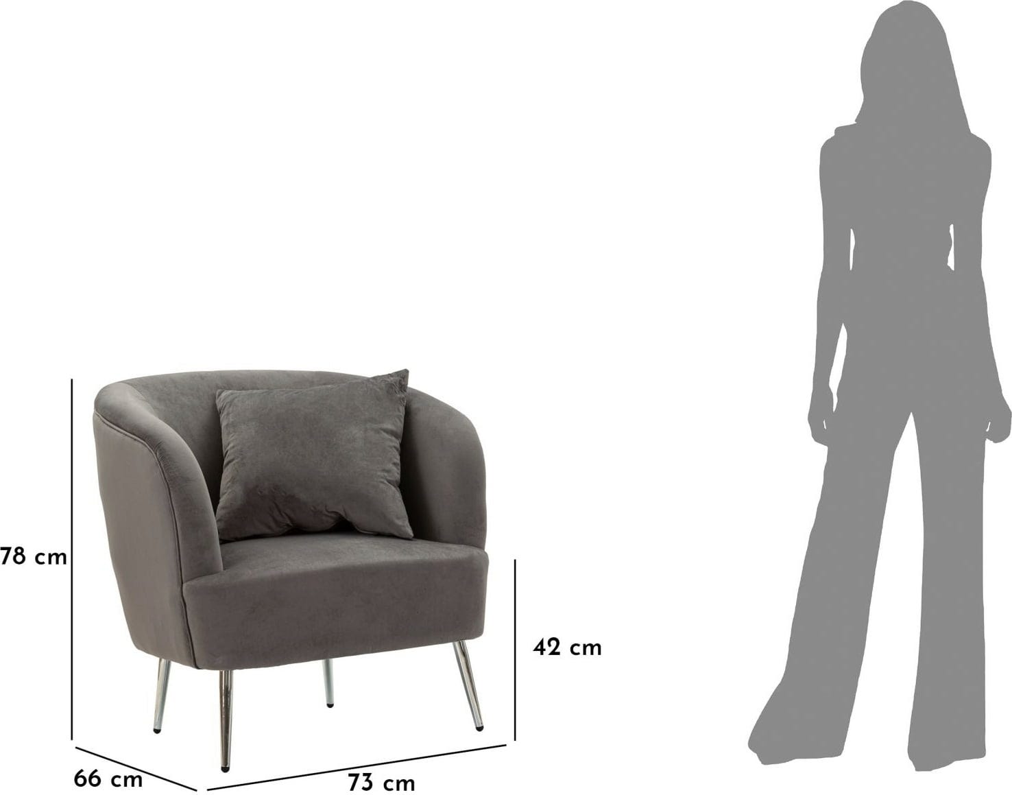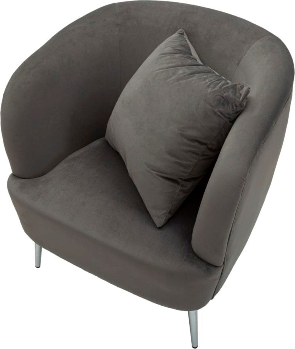 S tem elegantnim foteljem boste sobi dodali neustavljiv pridih sodobnega razkošja in maksimalnega udobja. Širok, vabljiv fotelj navdušuje z mehko, žametno prevleko v elegantnem sivem odtenku, ki vaši notranjosti takoj vdahne prijetno, a prefinjeno vzdušje.
