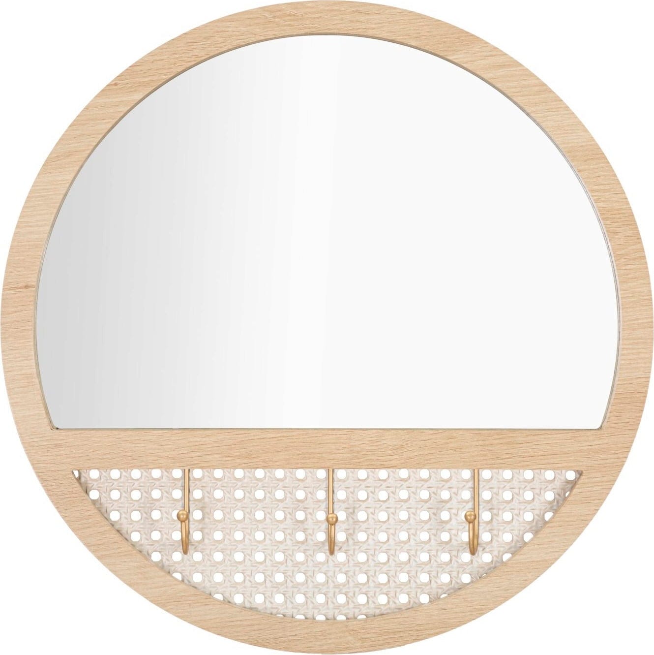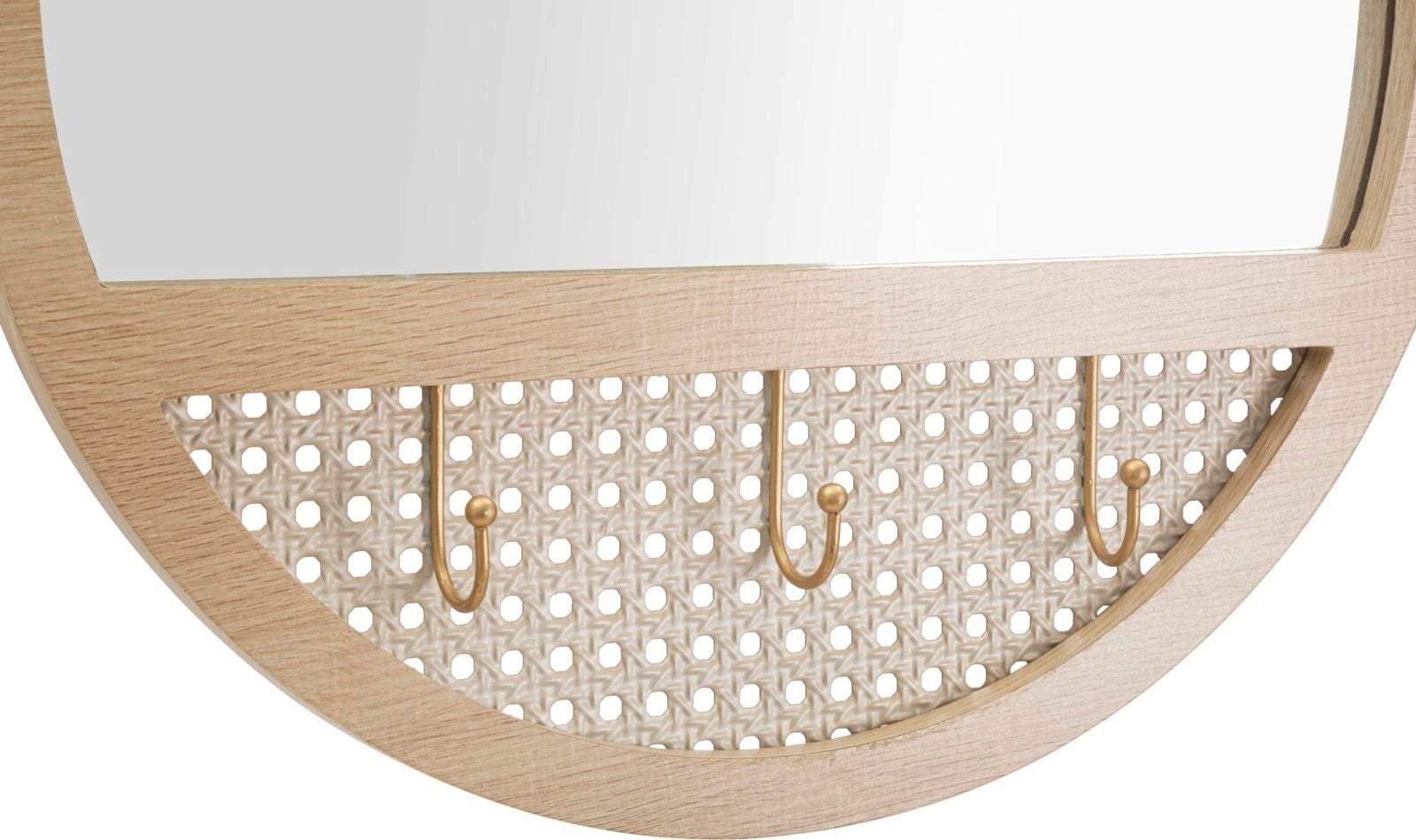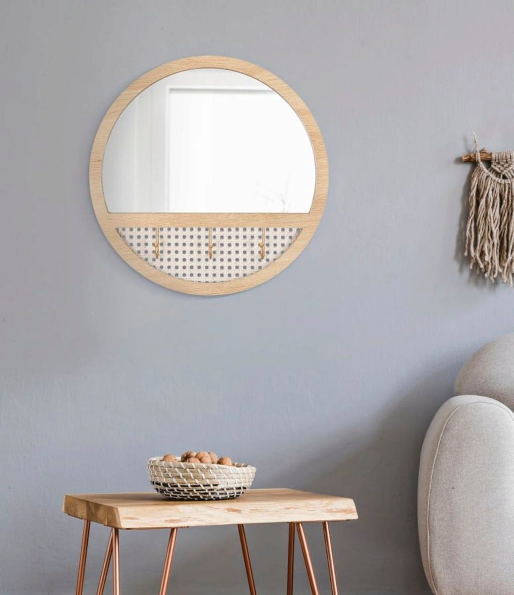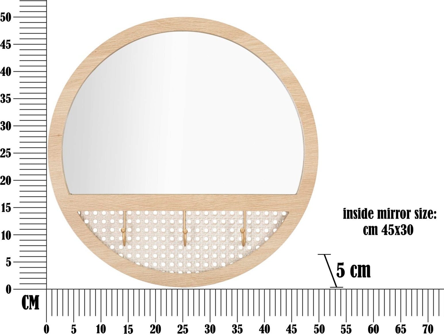 Zahvaljujoč čistim linijam in natančni zasnovi se ogledalo harmonično zlije z vsakim prostorom – bodisi kot praktičen okras na hodniku bodisi kot dekorativni element nad komodo v spalnici. Posebna podrobnost so trije integrirani kavlji za obešanje, ki ne zagotavljajo le stabilnosti, temveč tudi odlično zaokrožijo celoten estetski videz.