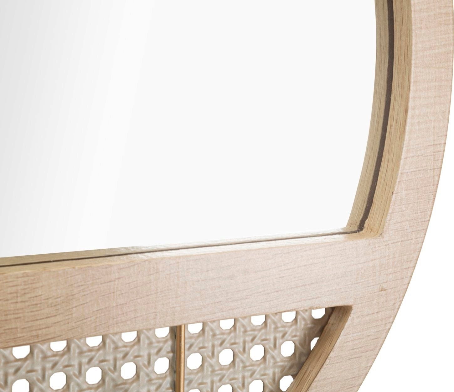 S stenskim ogledalom Fuji znamke Mauro Ferretti lahko v svoj dom vnesete pravi dizajnerski kos, ki združuje klasično izdelavo s sodobno lahkotnostjo. Okroglo zrcalno površino uokvirja okrašen okvir s fino strukturo, ki spominja na tradicionalni dunajski vzorec tkanega ratana in na vaših stenah ustvarja topel, naraven videz.