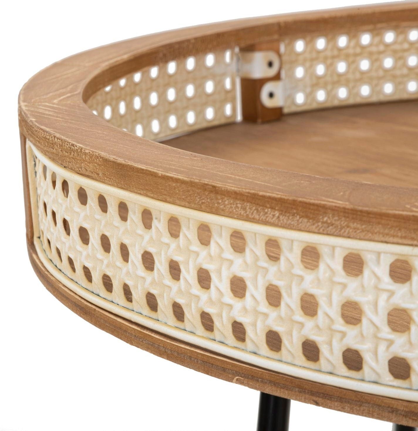 S to okroglo nizko mizico dodate dnevni sobi eleganten, a hkrati vsestranski pridih. Zaradi edinstvene kombinacije materialov je popoln dodatek k vsakemu slogu pohištva. Mizna plošča je uokvirjena s toplim lesenim robom in navdušuje z vložkom dunajskega pletenja, ki ji daje klasično, prefinjeno teksturo.