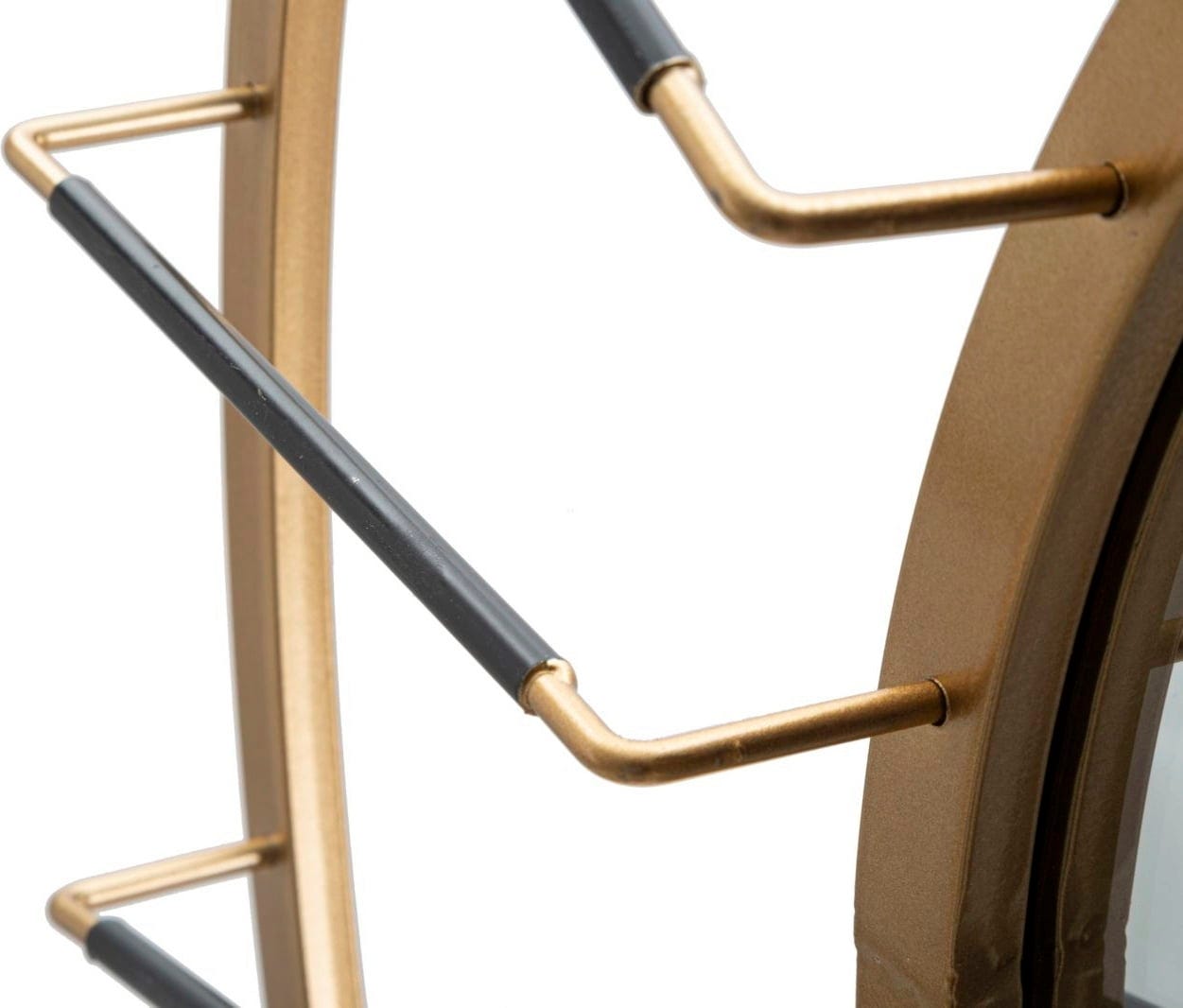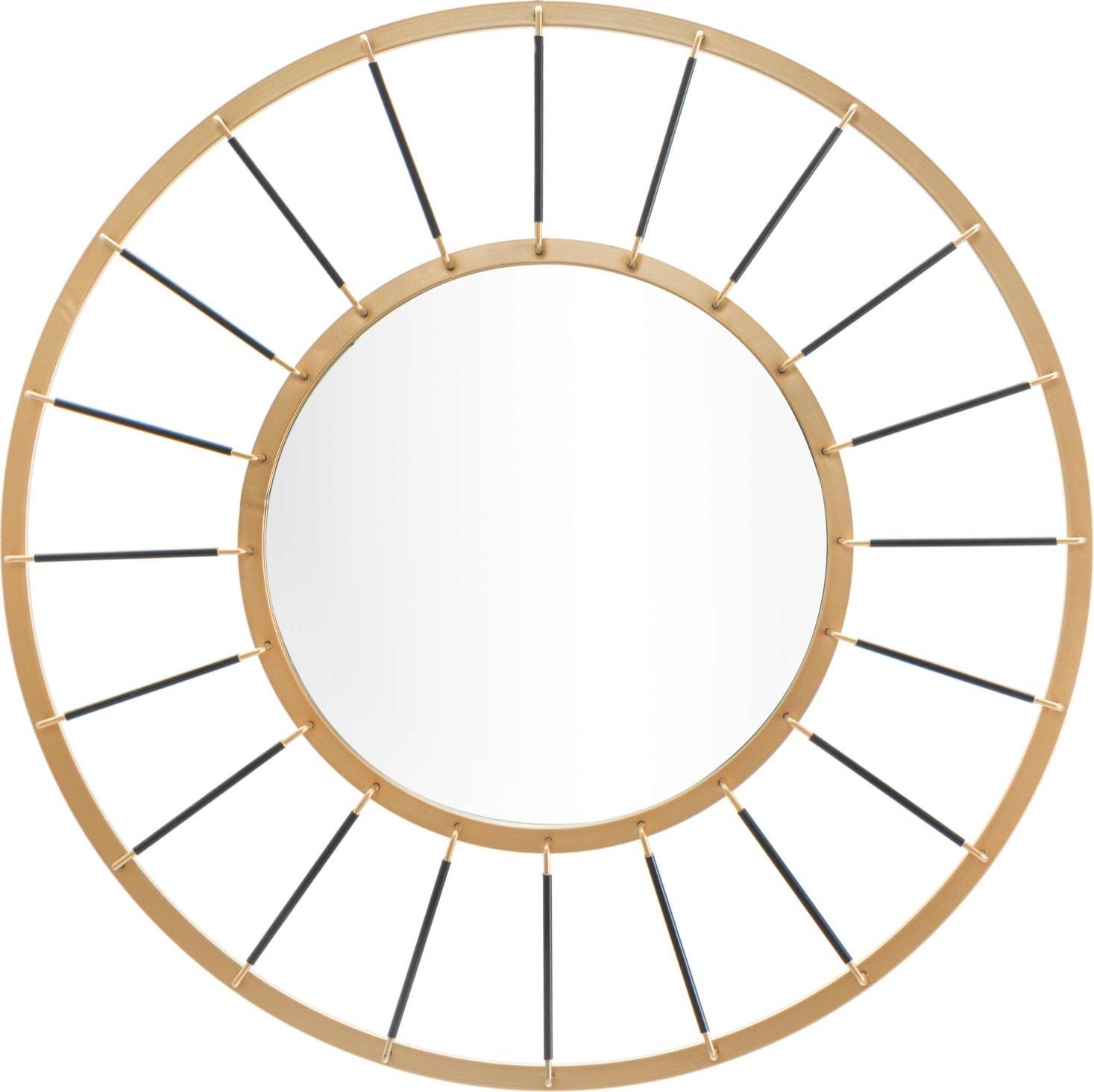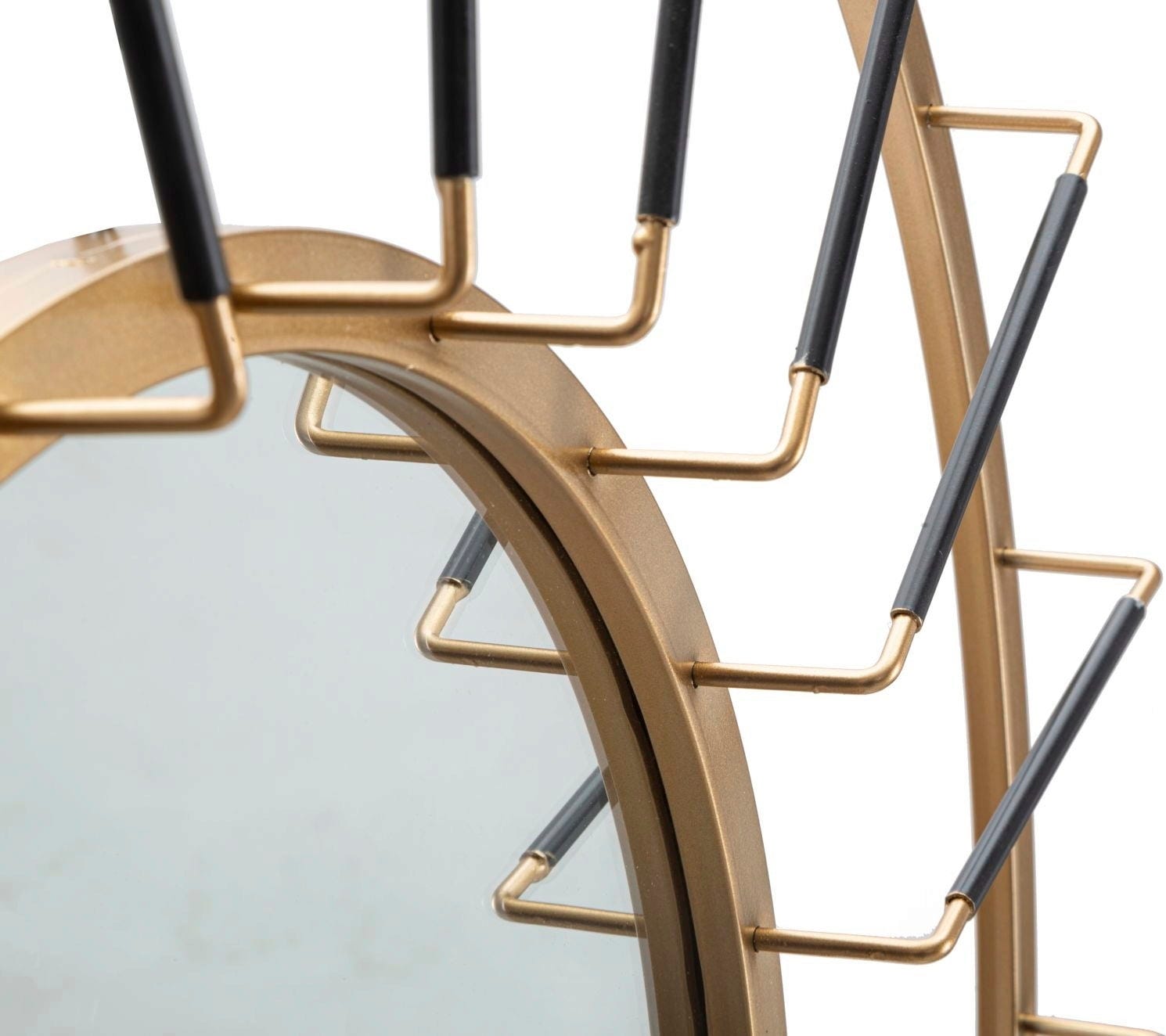 S stenskim ogledalom Glam Dark znamke Mauro Ferretti lahko na steno postavite pravi dizajnerski kos, ki navdušuje s prefinjenim prepletanjem barv in oblik. Eleganten dvojni okvir v zlati barvi je popolno ozadje za linearne črne kovinske prečke, ki se kot drobni žarki usmerjajo v sredino in dajejo ogledalu izjemno dinamiko.