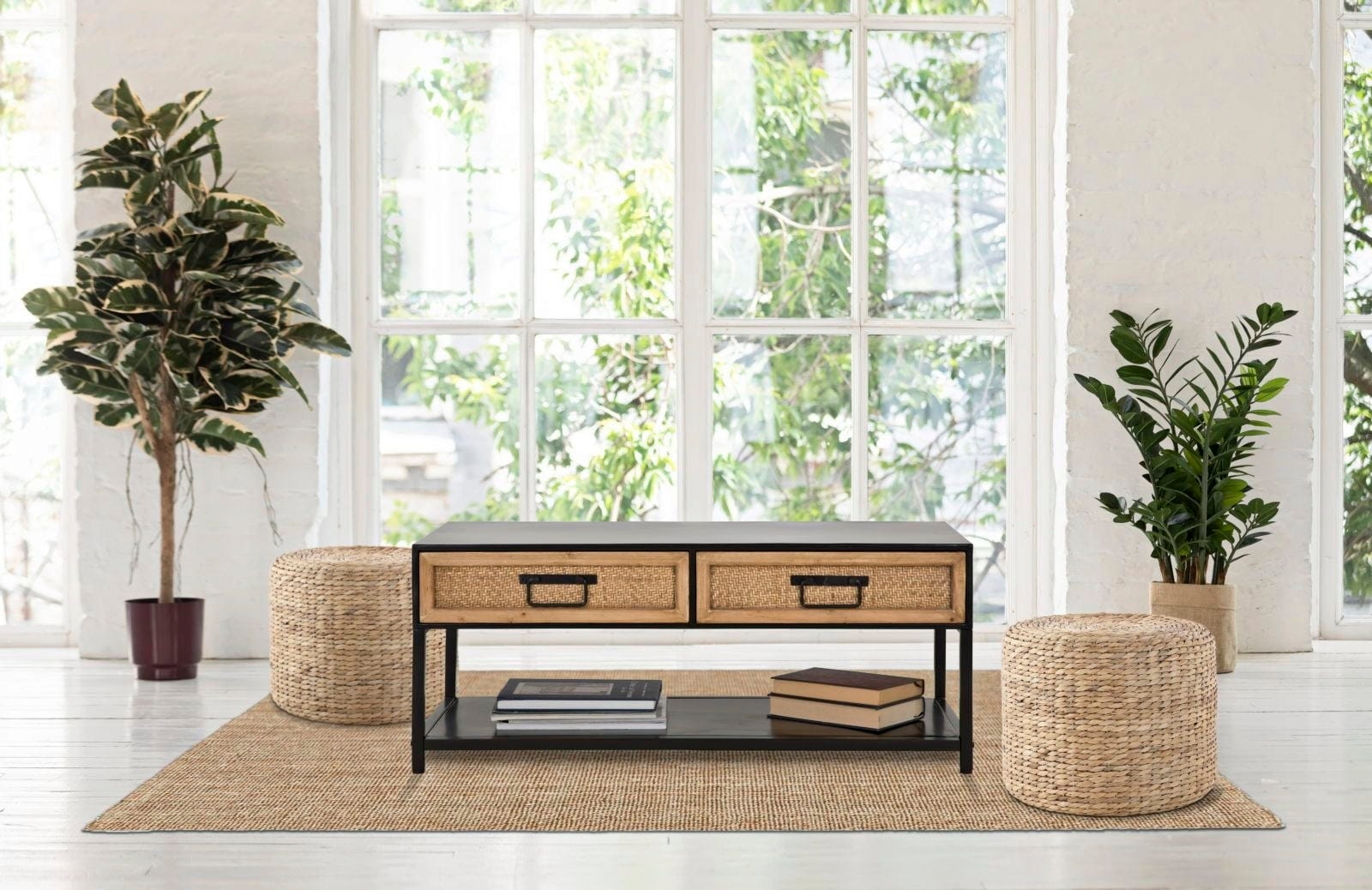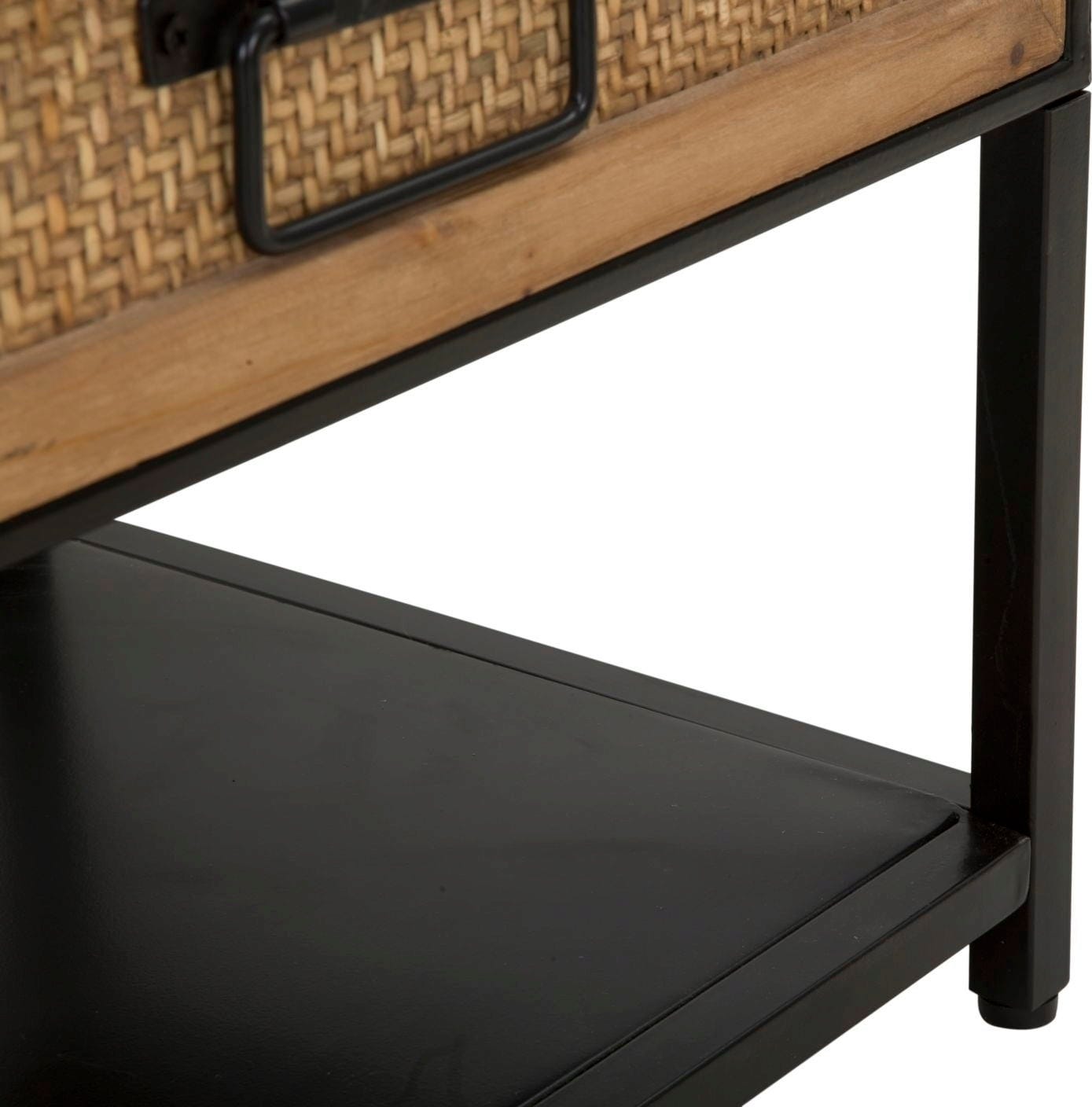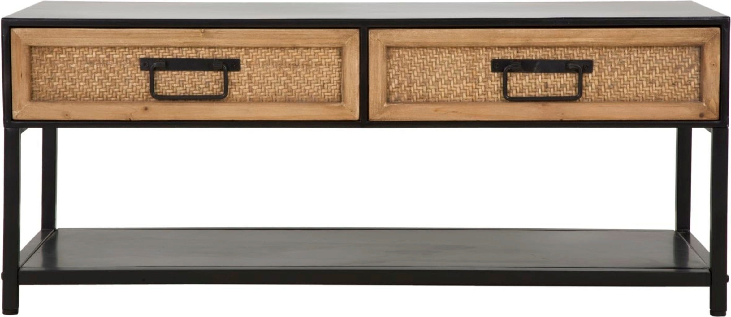 V nasprotju s tem imata dva lesena predala pletene sprednje strani v videzu ratana. Ta detajl daje omarici toplo in privlačno teksturo. Predala ponujata diskretno shranjevanje dodatkov in ohranjata vaš prostor za zabavo urejen in eleganten.