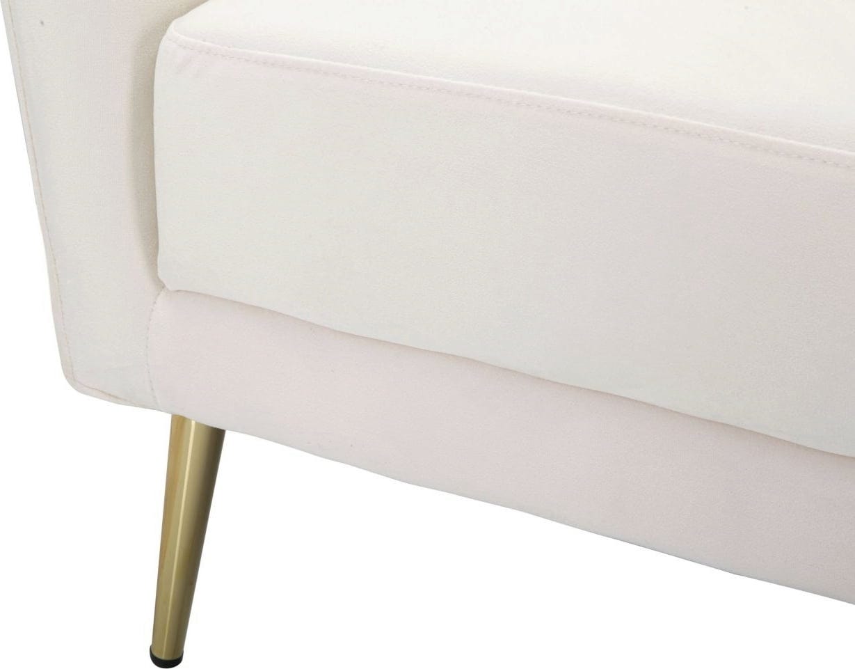 S tem elegantnim foteljem dodajate svojemu dnevnemu prostoru ali pisarni pridih elegance, glamurja in sodobnega razkošja. Fotelj navdušuje z mehkim, žametnim oblazinjenjem v elegantnem kremastem odtenku, ki takoj ustvari vrhunsko in privlačno vzdušje. Mehke, ukrivljene linije in razkošno oblazinjenje zagotavljajo maksimalno udobje pri sedenju.