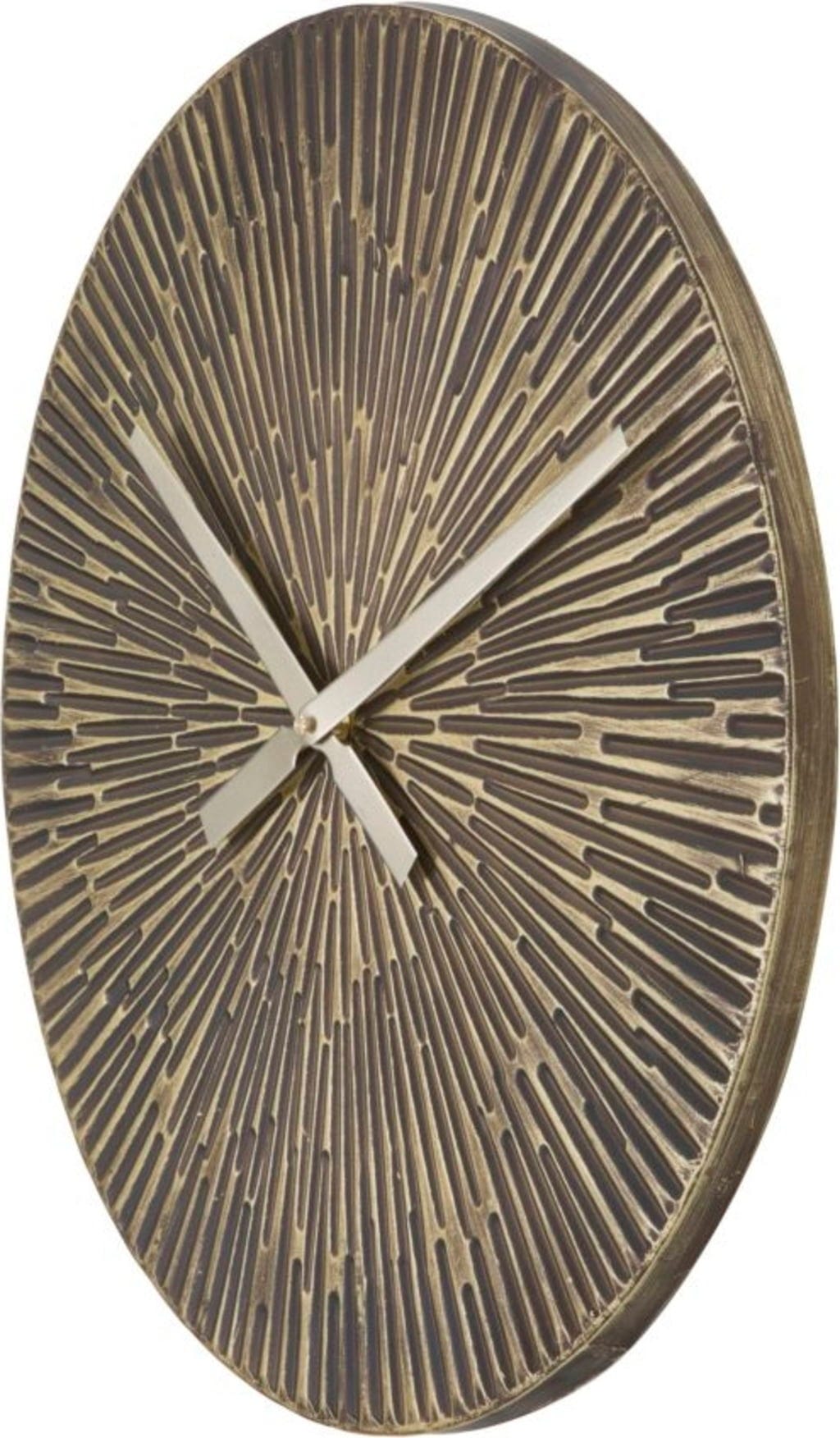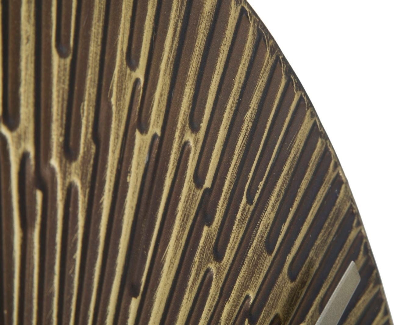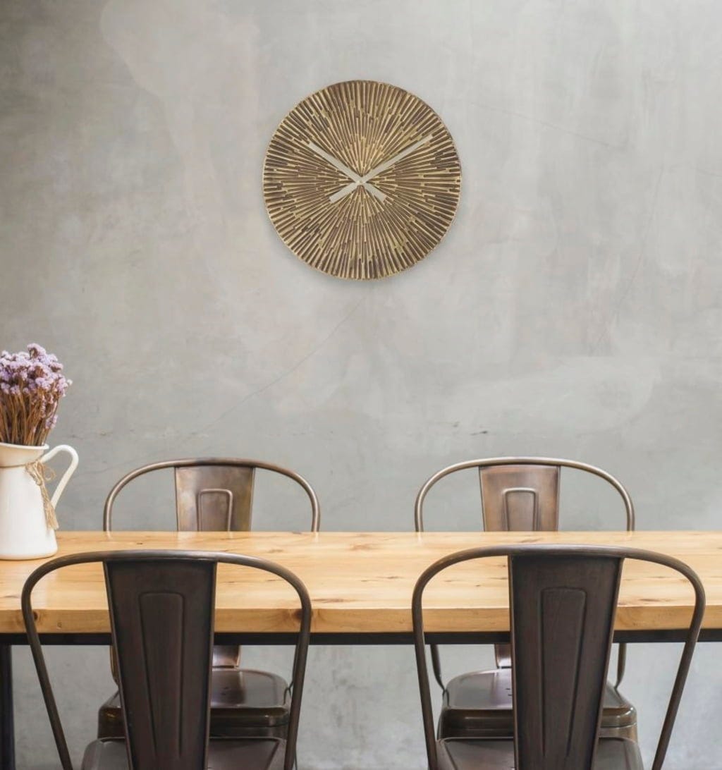 Kljub markantnemu videzu ura ohranja brezčasno eleganco zaradi minimalističnih linij. Preprosti kazalci subtilno izstopajo na bronastem ozadju in poudarjajo sodoben dizajn. Naj bo to v pisarni, dnevni sobi ali hodniku – ta ura je več kot le prikazovalnik časa; je ekskluzivno umetniško delo za prefinjen ambient.