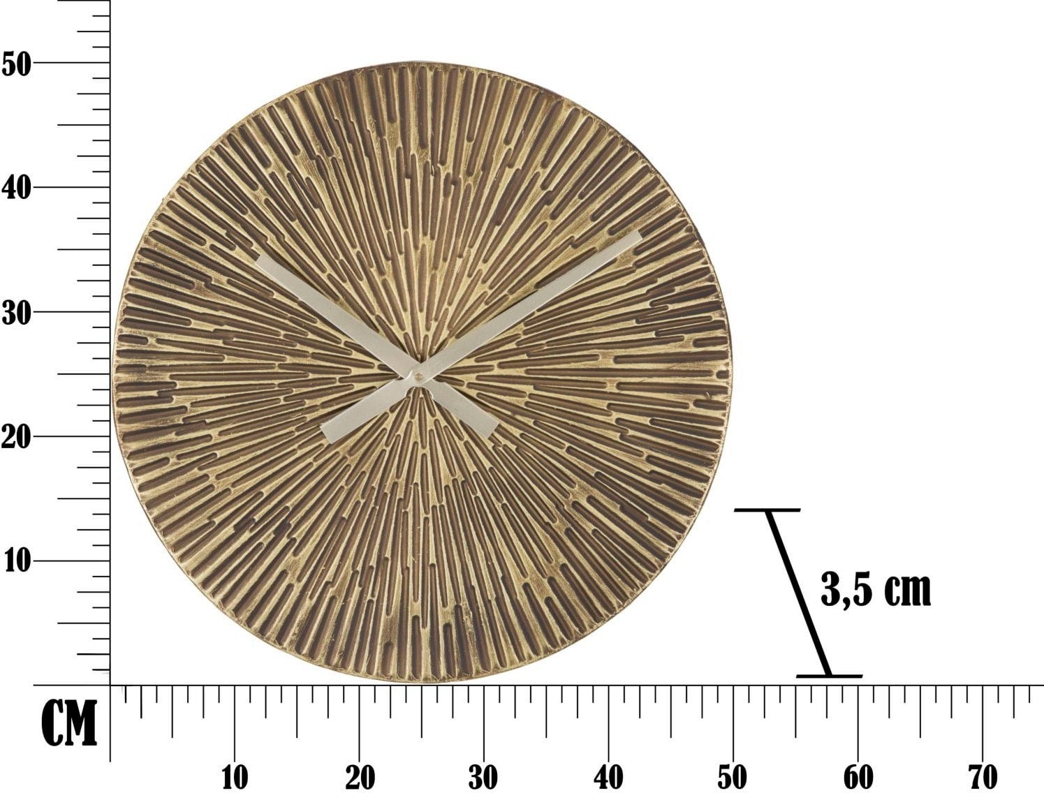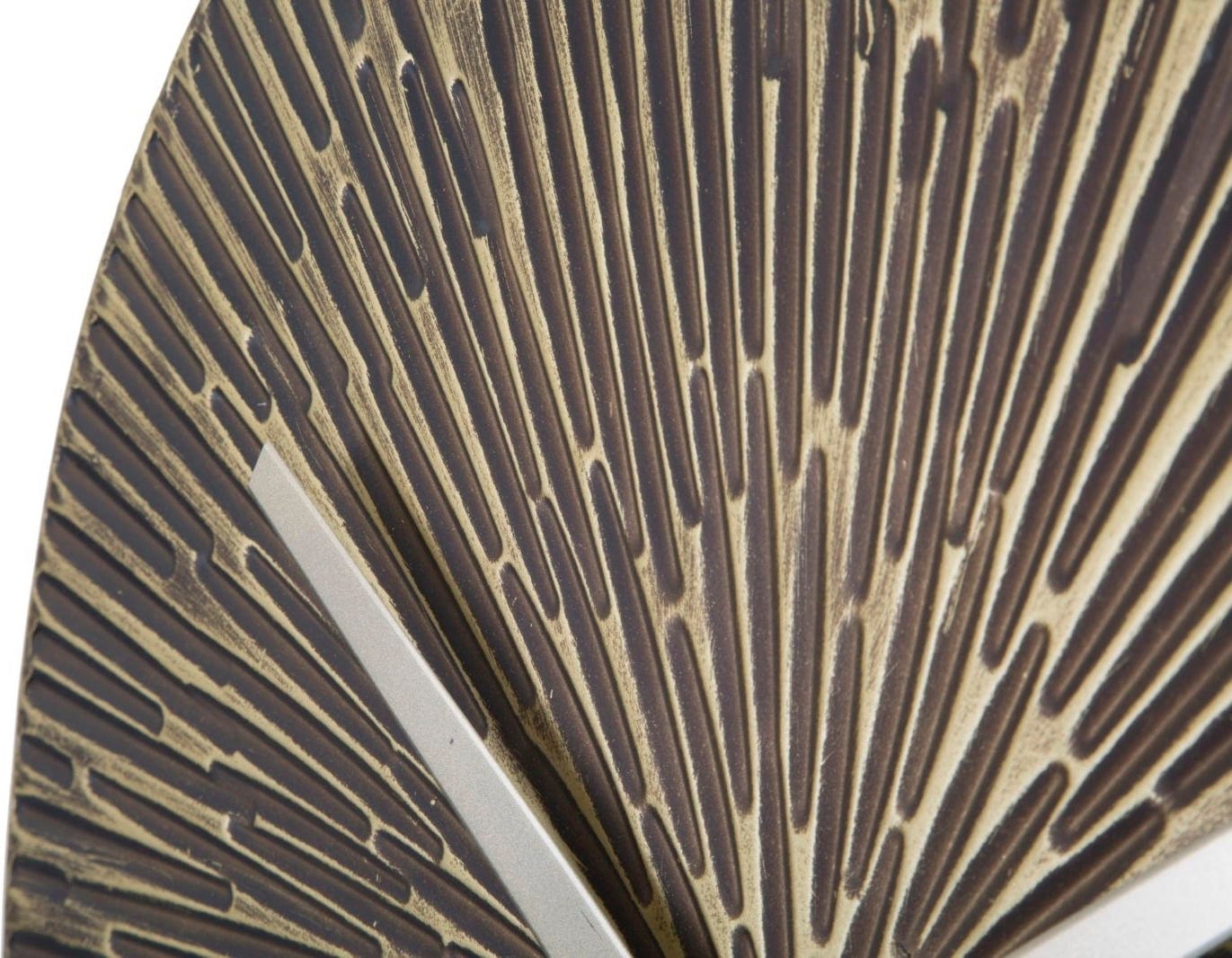 S stensko uro Opis znamke Mauro Ferretti podaste kiparsko izjavo na steni. Ta okrogla oblikovna ura iz kovine bronaste barve navdušuje z nenavadno strukturo površine, ki spominja na stilizirane sončne žarke.