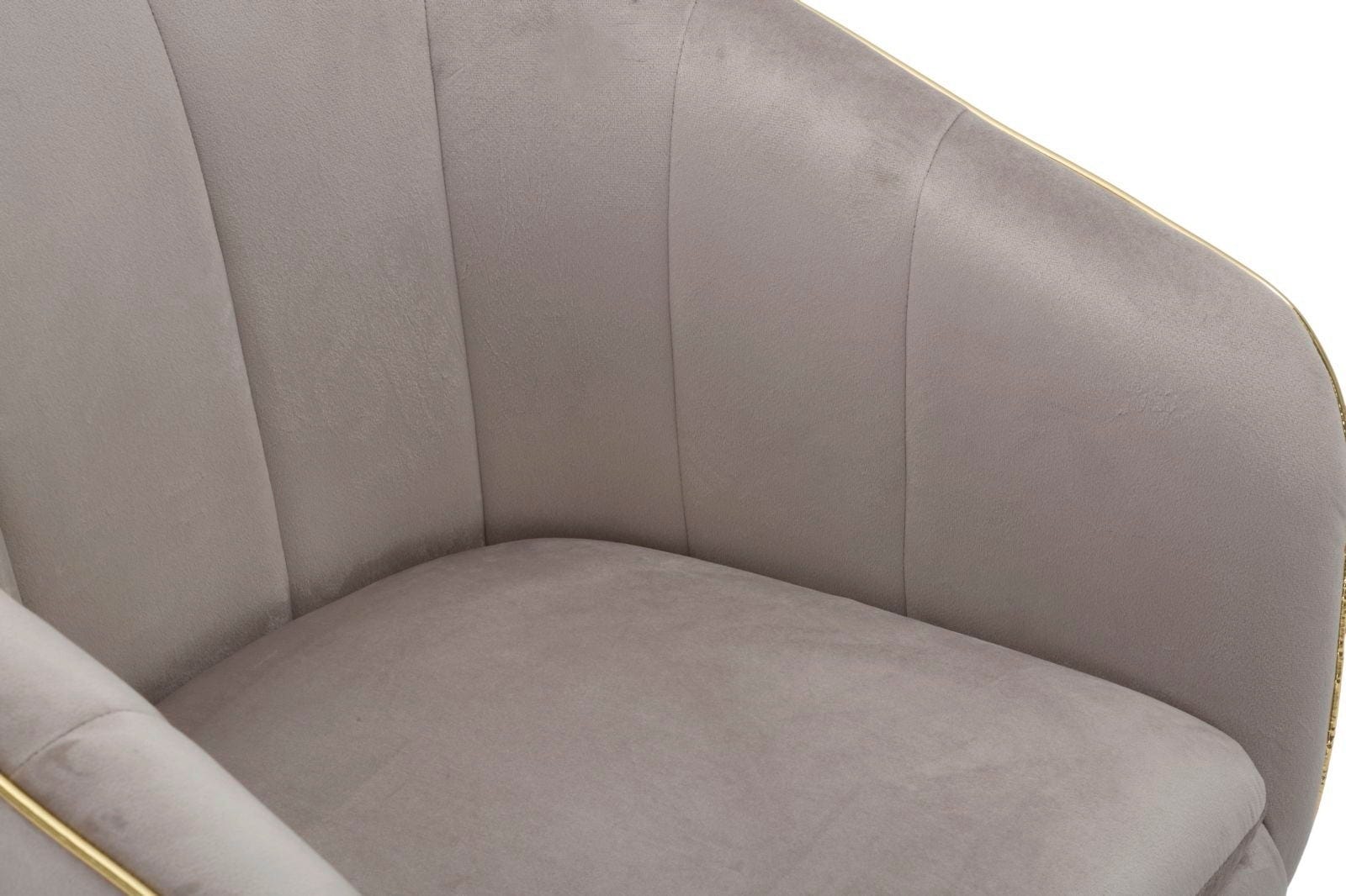 S tem elegantnim foteljem dodajate svoji sobi pridih elegance in sproščujočega udobja! Ima mehko, oblazinjeno prevleko iz tkanine v elegantnem sivem odtenku. Elegantna oblika je poudarjena z bleščečim zlatim robom, ki doda pridih razkošja.