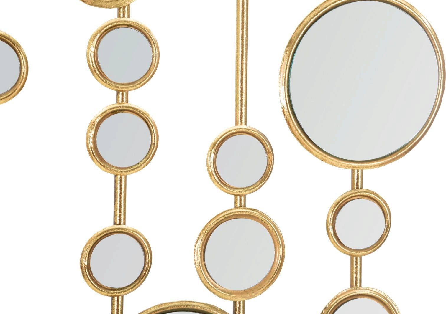 S Small Mirrors stensko dekoracijo znamke Mauro Ferretti spremenite svojo steno v bleščečo umetnino. Ta zlata 3D dekorativna plošča navdušuje s sodobno geometrijsko zasnovo s številnimi okroglimi ogledali različnih velikosti, ki so razporejena na nežnih navpičnih kovinskih nosilcih.