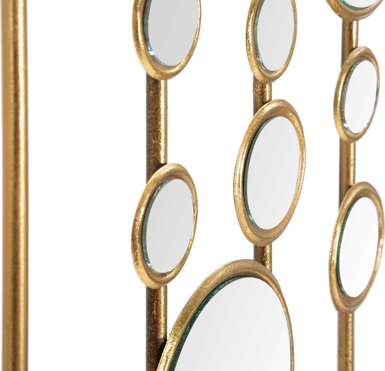Zrcalne površine lovijo svetlobo v prostoru, kar zagotavlja živahne odseve in občutek vizualne povečave. Razkošna zlata obdelava okvirjev v trenutku doda pridih elegance in glamurja vsakemu prostoru. Na hodniku, v dnevni sobi ali spalnici - ta stenska dekoracija je popolna izbira za vse, ki iščejo ekskluzivni dizajnerski kos, ki odlično združuje funkcionalnost in umetnost.