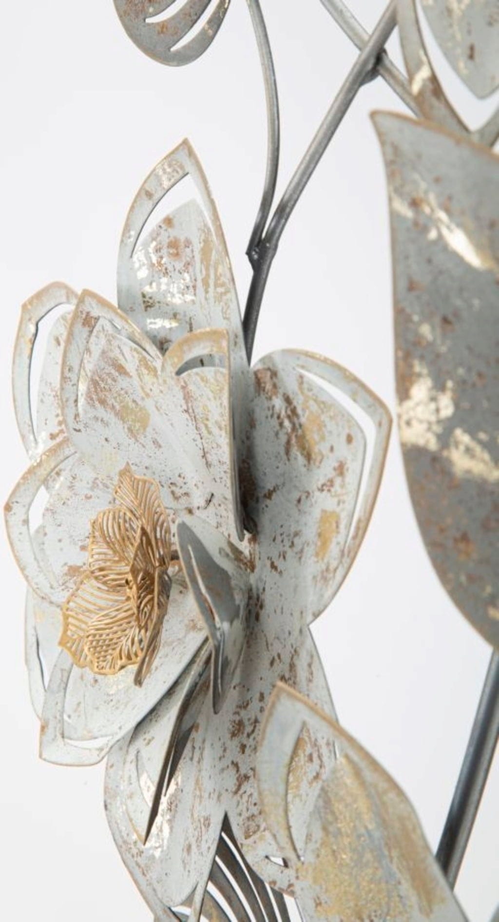 S stensko dekoracijo Artic znamke Mauro Ferretti lahko svoje stene spremenite v ledeno, čudovito in elegantno umetniško galerijo. Ta impresivna 3D-plošča popolnoma uteleša trenutni trend tridimenzionalnega oblikovanja sten in vsakemu prostoru daje presenetljivo globino in ekskluzivno vzdušje. Trije velikodušno izklesani cvetovi takoj pritegnejo pozornost s svojo naravno obliko, medtem ko prefinjena kombinacija hladne bele barve in razkošnih zlatih poudarkov doda pridih glamurja.