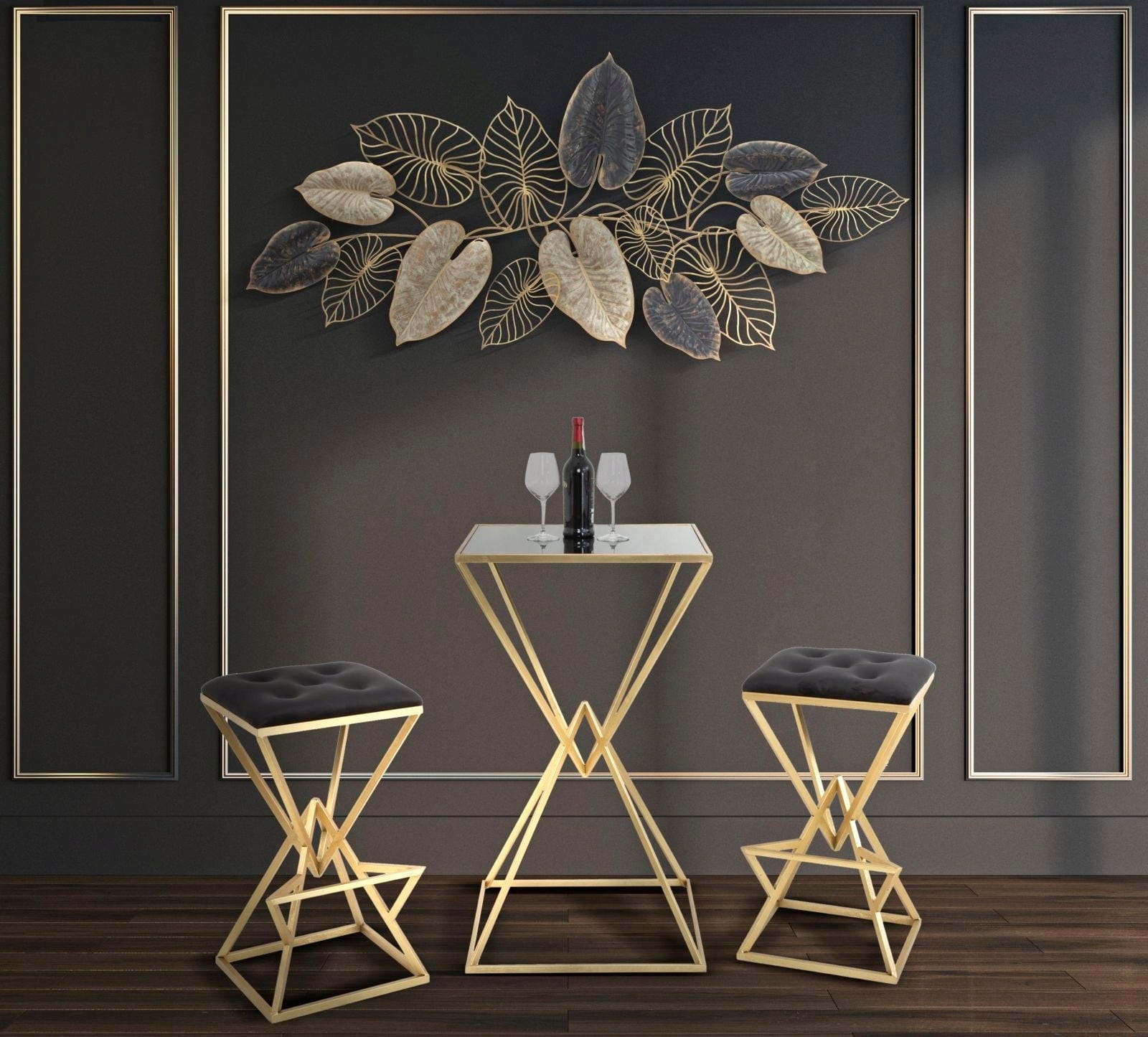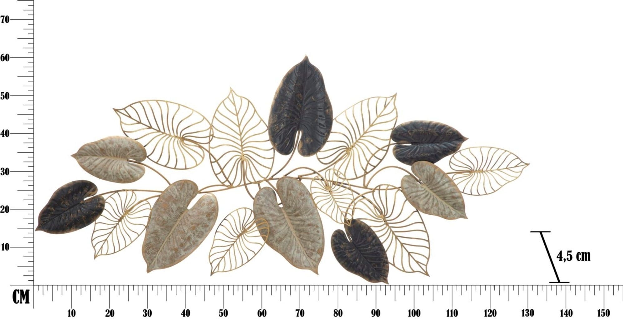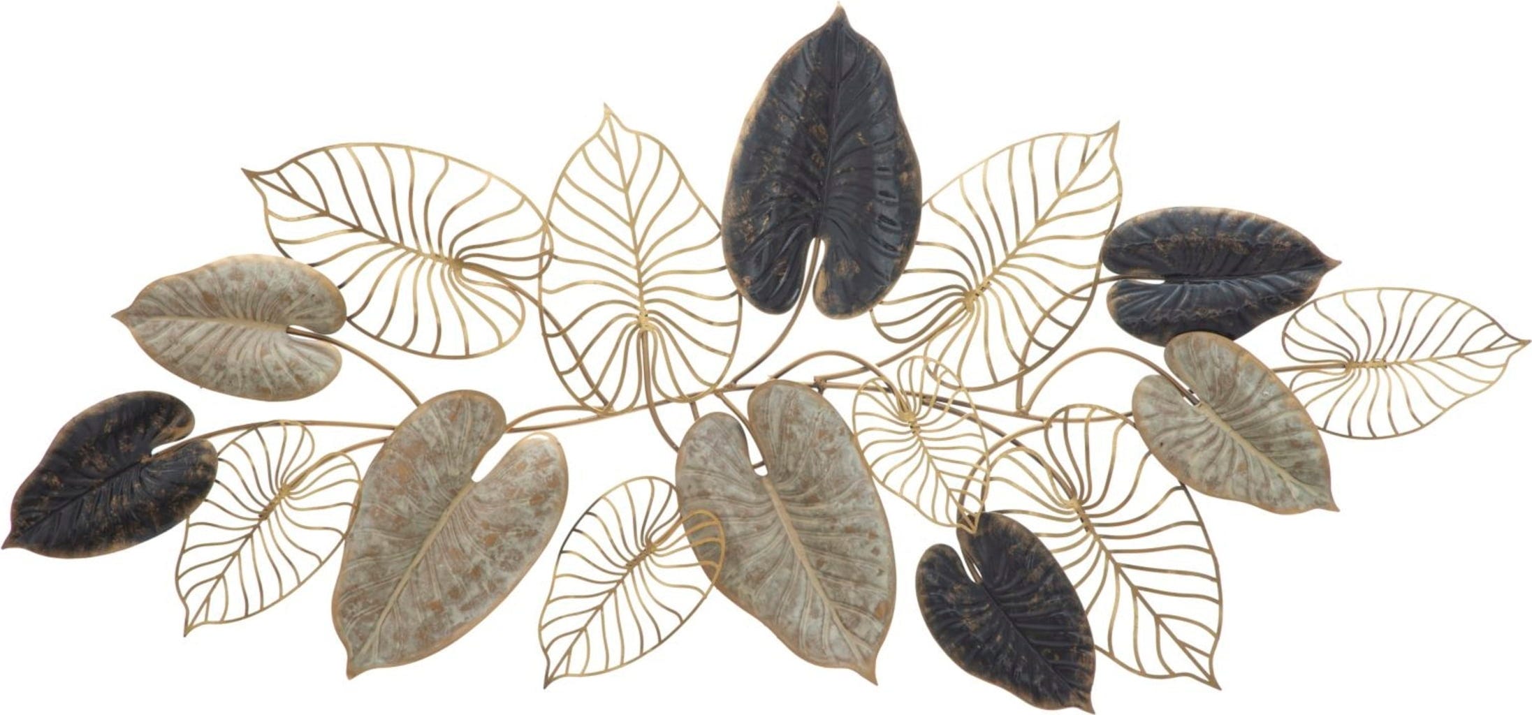 S stensko dekoracijo Century-A znamke Mauro Ferretti ustvarite razkošen vtis. Ta horizontalna kovinska plošča združuje priljubljen 3D trend in vašim stenam daje očarljivo globino ter presenetljivo vzdušje. Zasnova se ponaša z obsežno kompozicijo zapleteno izdelanih listov, ki se lesketajo v elegantnem prepletu temno črne, nežno krem in bleščeče zlate barve.