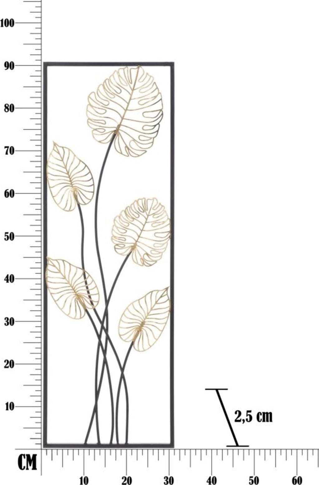 Spremenite svoje stene v ekskluzivno umetniško delo s stensko dekoracijo Luxy -B- znamke Mauro Ferretti. a pravokotna kovinska plošča sledi priljubljenemu trendu 3D oblikovanja sten in vašemu domu takoj doda pridih glamurja. Dizajn očara s svojimi nežnimi, zlatimi listi monstere, ki spominjajo na subtilne skeletne strukture in izžarevajo presenetljivo lahkotnost.