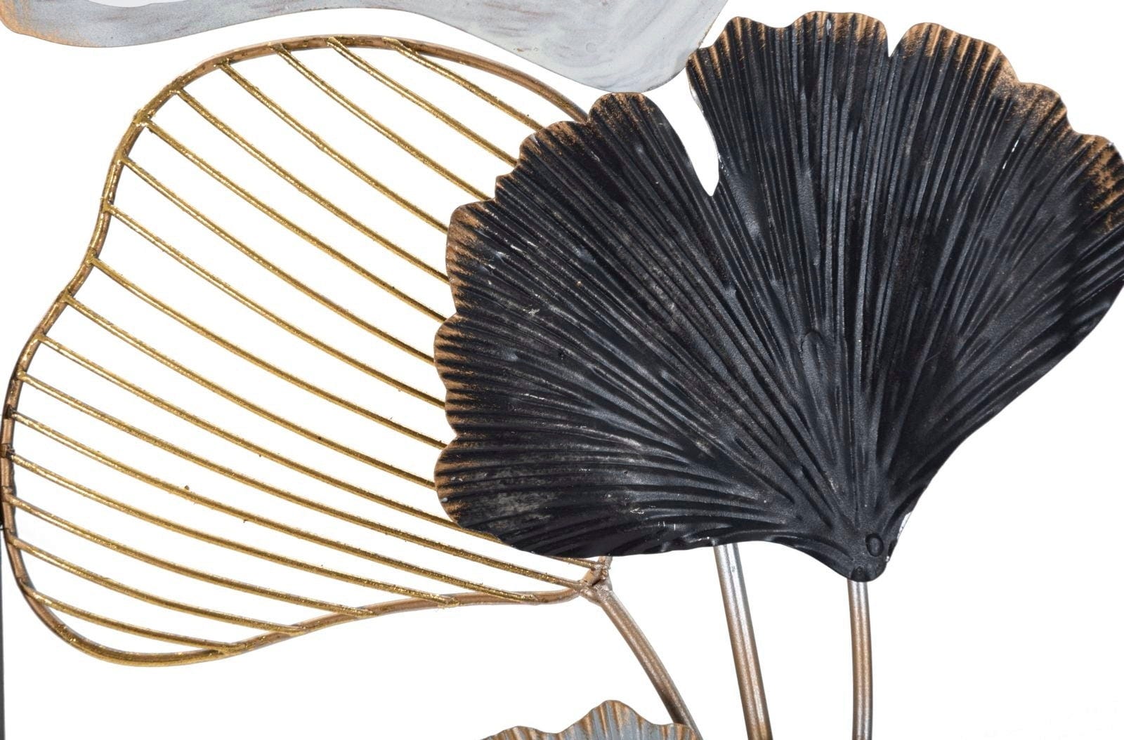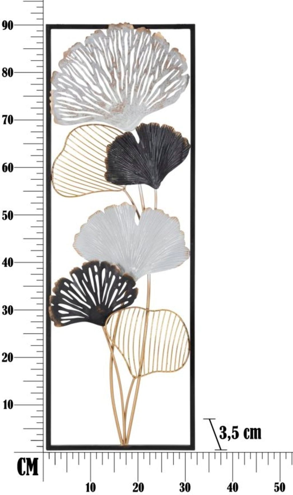 Dajte svojim stenam osupljiv značaj s stensko dekoracijo Ory -B- znamke Mauro Ferretti. Ta impresivna kovinska plošča popolnoma uteleša trenutni trend 3D oblikovanja sten in v vaš dom prinaša presenetljivo, umetniško vzdušje. Dizajn očara s svojimi pahljačastimi motivi ginka, ki se lesketajo v harmoničnem prepletu elegantne bele, globoke črne in razkošne zlate barve.