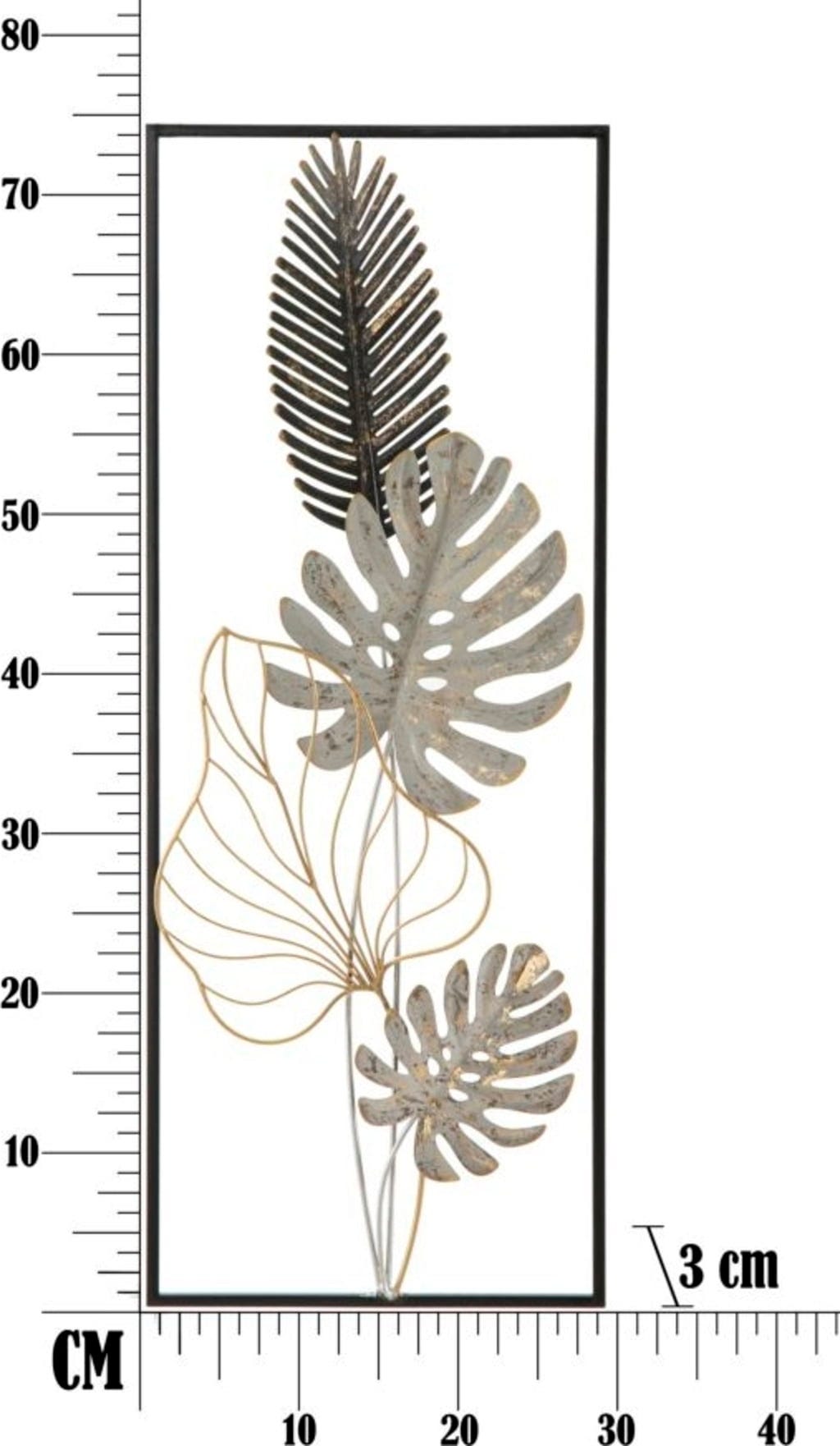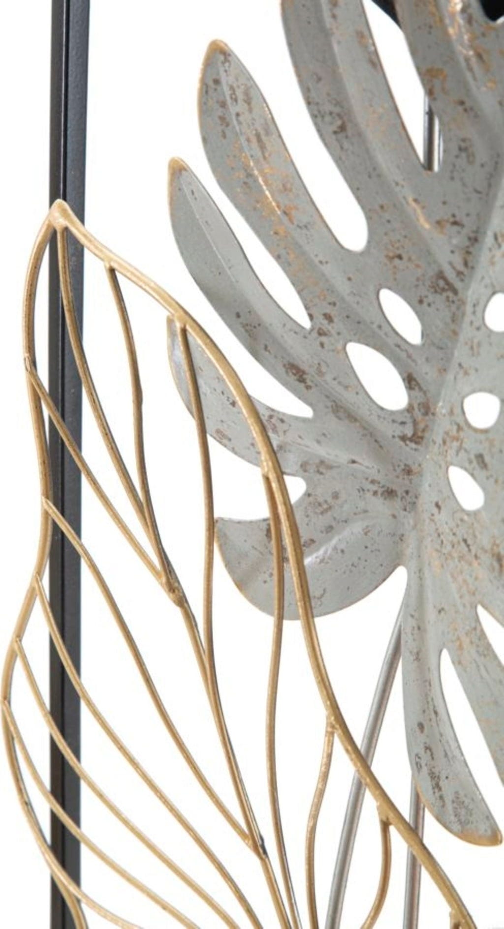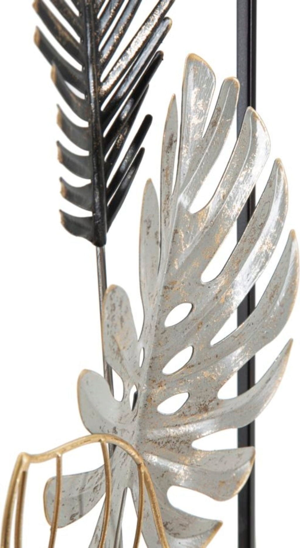 S stensko dekoracijo Palm -A- znamke Mauro Ferretti lahko v svoj dom vnesete moderen botanični videz v še posebej razkošni različici. Ta impresivna kovinska plošča se razlikuje od klasičnih ravnih stenskih dizajnov in namesto tega ponuja očarljiv 3D-učinek, ki vašim sobam v trenutku doda globino in življenje. Presenečeni boste, kako se naravni motivi listov – od nežne palme do ikoničnega lista monstere – usklajujejo v elegantni mešanici zlate, nežne bele in temnih poudarkov.