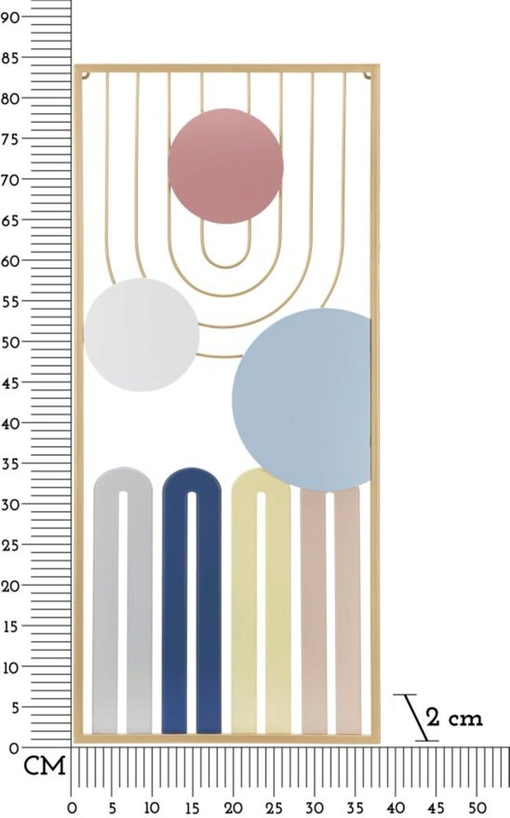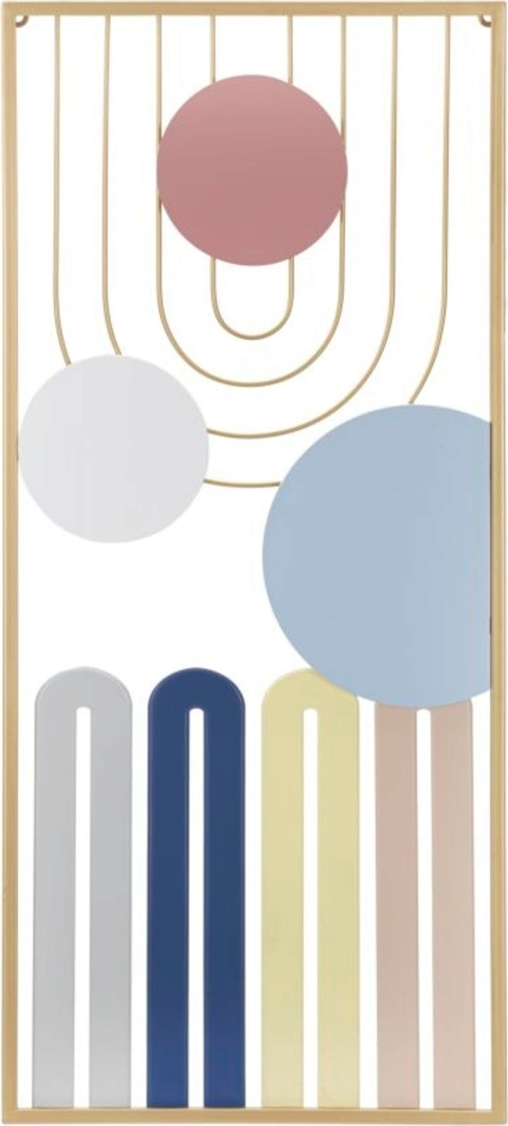 V svoj dom vnesite svežo energijo in sodobno umetnost s stensko ploščo Colorful -A- znamke Mauro Ferretti. Ta dekorativni 3D kovinski predmet navdušuje s kompozicijo zaobljenih geometrijskih likov, ki so odlično umeščeni v eleganten okvir zlate barve. Kombinacija nežnih pastelnih barv, kot sta roza in svetlo modra, z drznimi poudarki v temno modri in rumeni barvi vsakemu prostoru takoj doda posebno svetlost in dinamičnost.