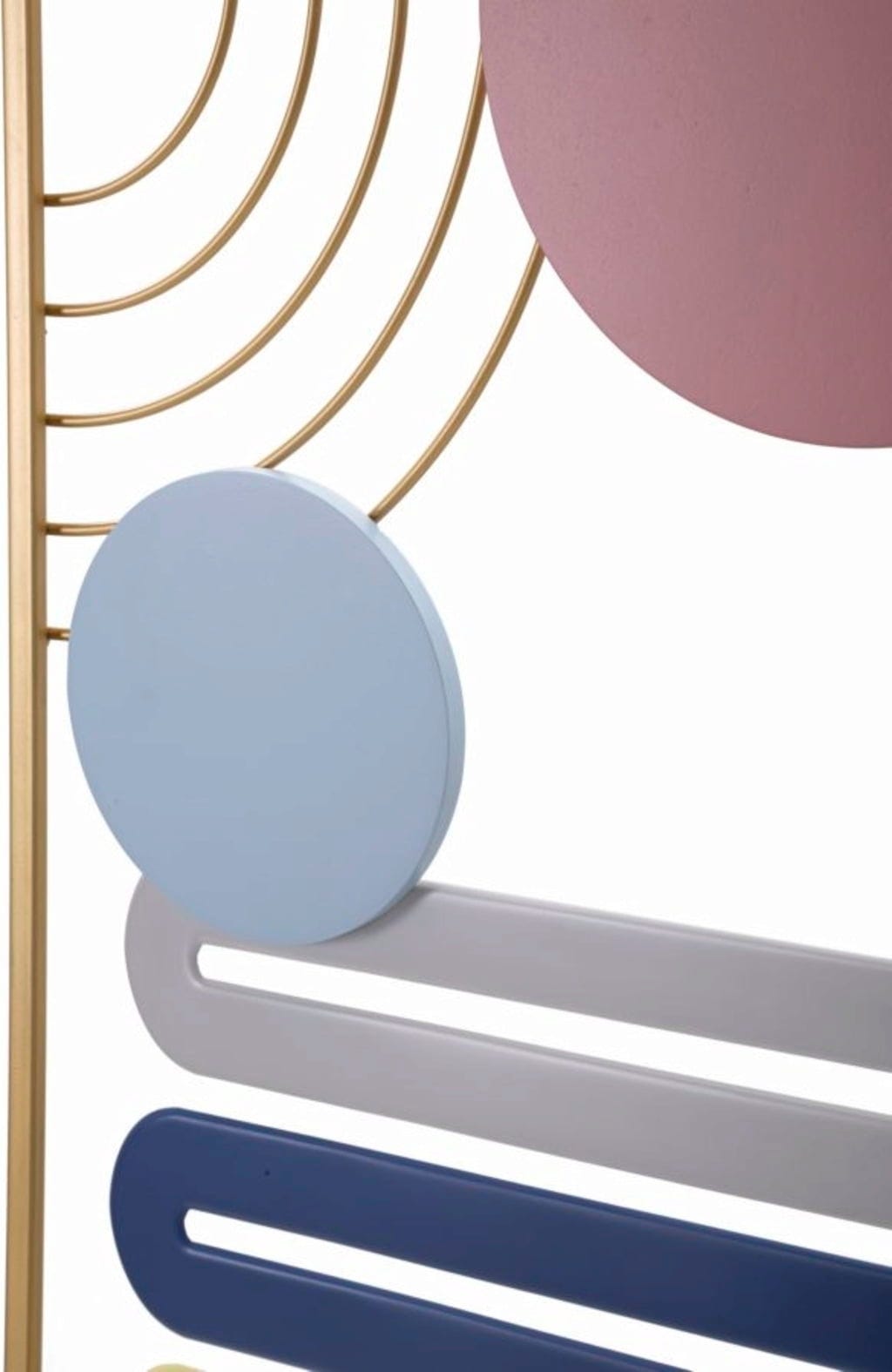 S stensko ploščo Colorful -B- znamke Mauro Ferretti prostoru dodate elegantne barvne poudarke. Ta dekorativni 3D kovinski predmet navdušuje s harmonično kompozicijo zaobljenih geometrijskih oblik, ki so vertikalno razporejene v elegantnem zlatem okvirju. Kombinacija nežno rožnate, sveže modre in sijoče rumene barve v vsak prostor takoj vnese svetlost in prijazno vzdušje.