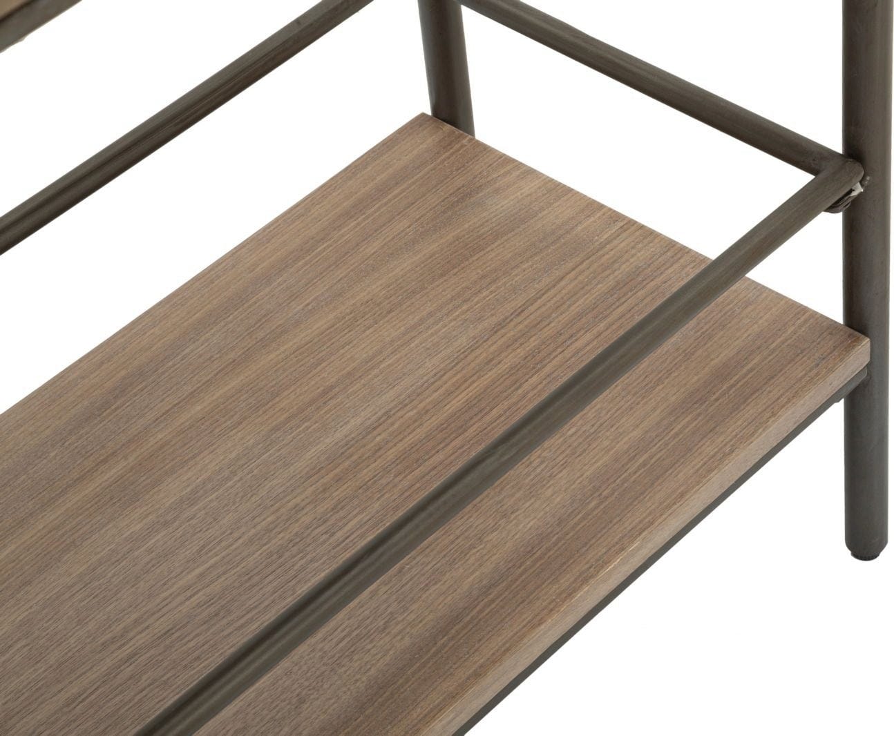Odprta polica na dnu je idealna za elegantno razstavljanje dekorativnih predmetov ali knjig. Zahvaljujoč sodobnemu, industrijsko navdihnjenemu dizajnu se ta omarica brezhibno zlije z dnevnimi sobami, hodniki ali pisarnami ter ustvari urejeno in elegantno vzdušje.