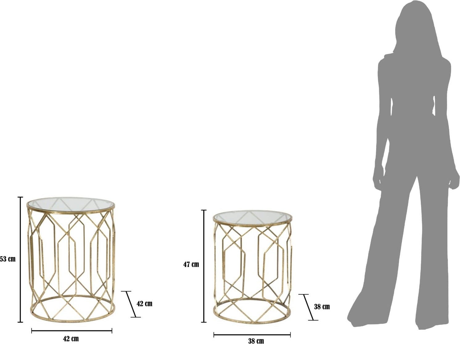Vsaka mizica ima prozorno stekleno ploščo. Ne glede na to, ali ju uporabljate kot podstavek za skulpture ali kot stranski mizici – ta set doda pridih elegance vsakemu prostoru!