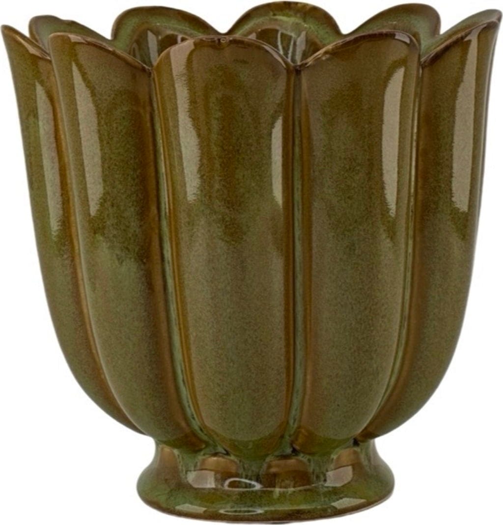 Okrasni cvetlični lonec "Petulia" združuje moderno eleganco z edinstveno izdelavo. Izdelan je iz visokokakovostne keramike in prekrit z reaktivno glazuro, zato ima vsak lonec svoj edinstven barvni odtenek – resnično unikaten kos. Nežno sijoča, prepognjena oblika daje cvetličnemu loncu eleganten videz in se harmonično zlije z različnimi notranjimi slogi.