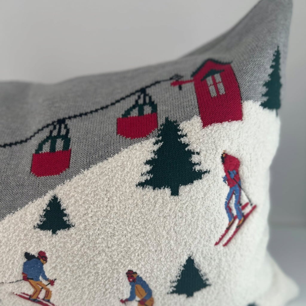 Dekorativna blazina za vaš dom z očarljivimi zimskimi prizori s smučišča