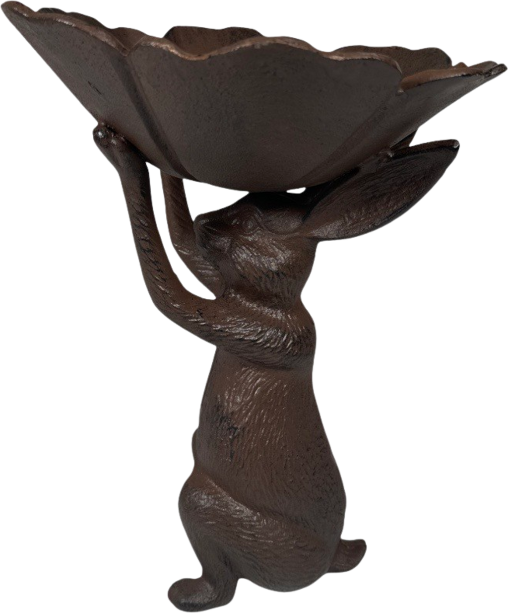 Z kopeljo za ptice v obliki zajca boste v svoj vrt vnesli dekorativni kos v toplem rjavem tonu. Težka litoželezna zasnova stoji varno, se naravno zlije z okolico in ponuja vabljivo zbirališče za ptice. Idealna za grede, vrtne poti ali terase.