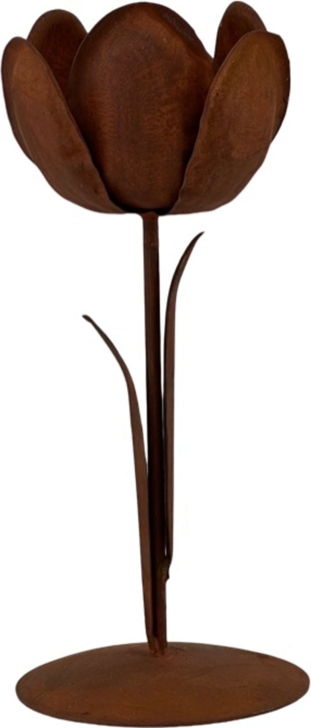 Svečnik "Tulipan" prinaša na mizo romantičen čar. Zasnovan je v obliki cveta in ponuja dekorativni prostor za stožčaste sveče. Izdelan je iz robustnega železa in ima antično-rustikalen videz, zato združuje rustikalno estetiko s cvetlično lahkotnostjo.