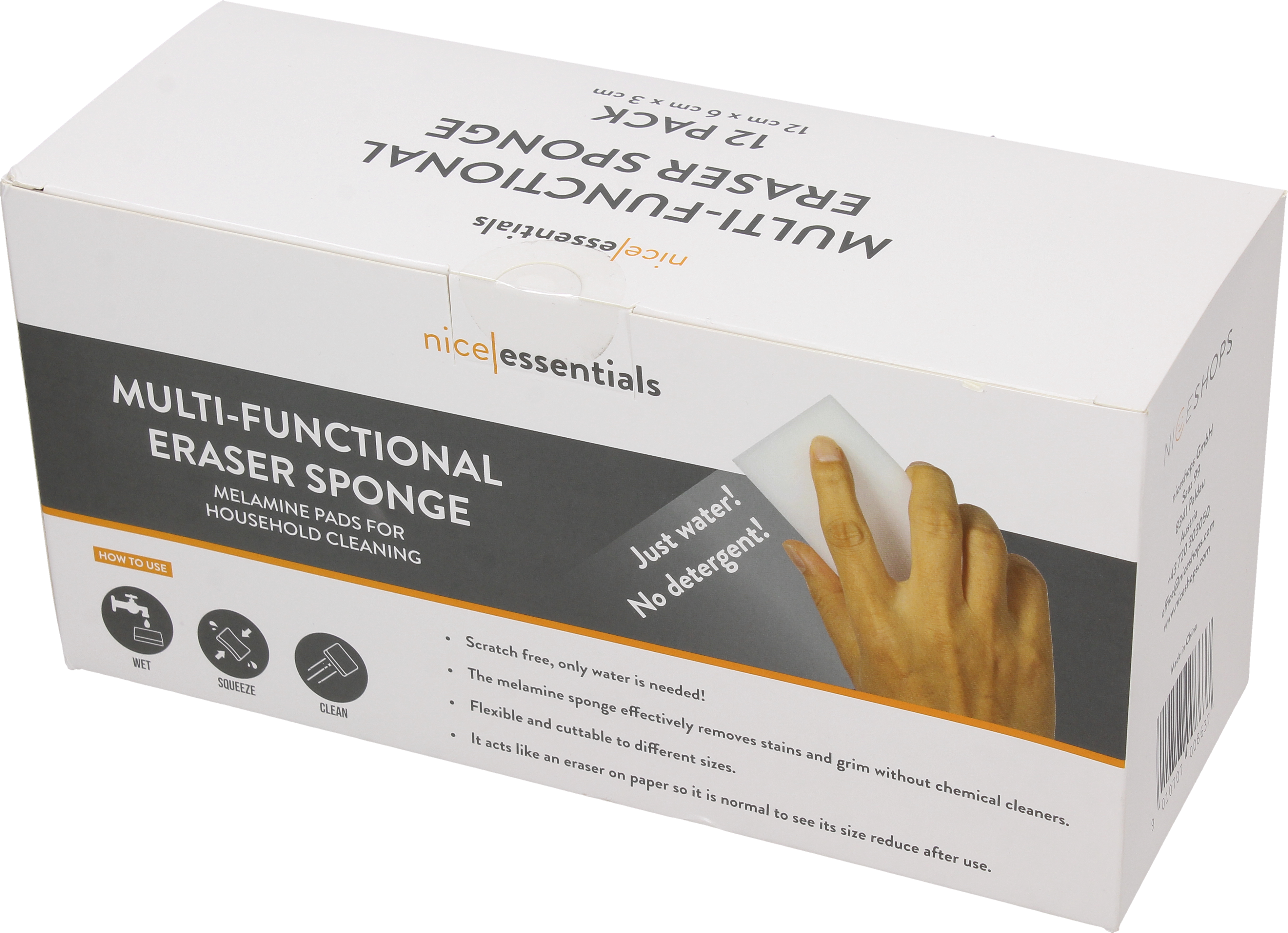 Madeži, sive lise ali lepljii ostanki? Z čistilnimi radirkami iz melamina znamke nice essentials vsa umazanija izgine kot po čarovniji. Preprosto rahlo navlažite, obrišite prizadeto območje in opazujte, kako se umazanija raztopi – vse brez potrebe po kemičnih čistilih.