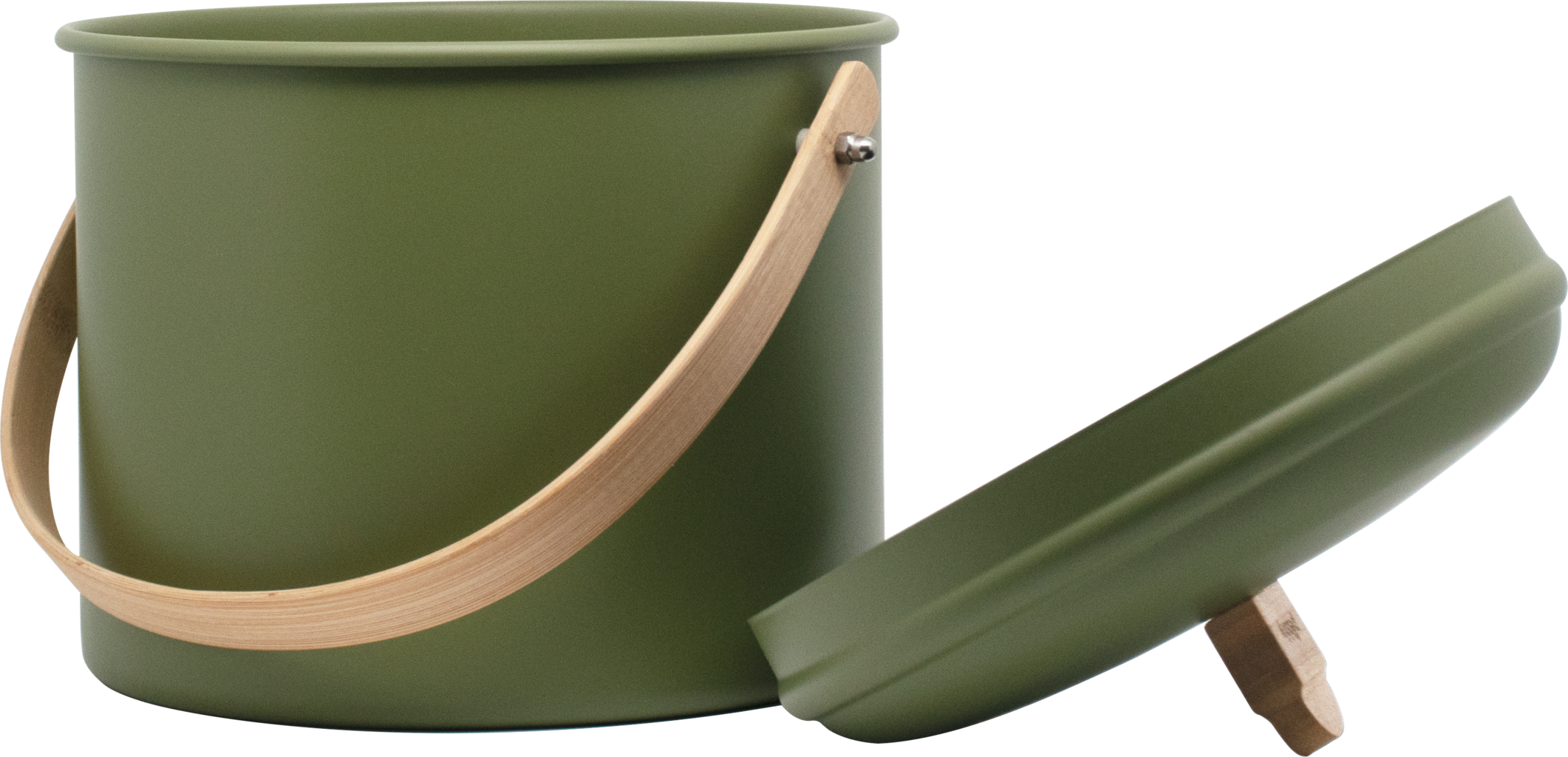 Sam kompostnik je izdelan iz kovine, robusten ročaj je izdelan iz bambusa in idealno zaokroži sodoben in eleganten videz, tako da se kompostnik popolnoma prilega vašemu kuhinjskemu ambientu.
