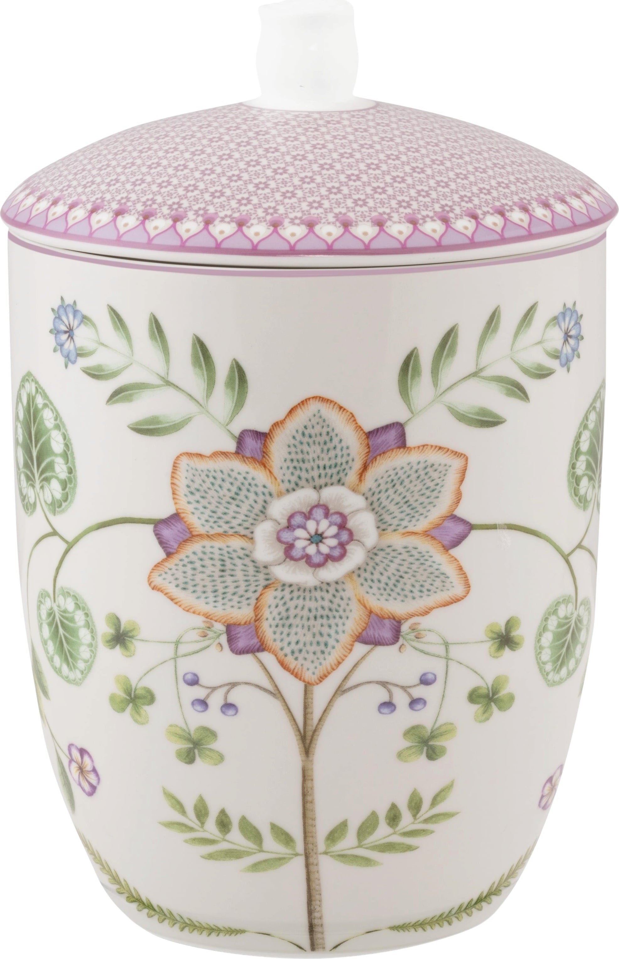 S to čudovito posodo iz kolekcije Lily & Lotus podjetja Pip Studio shranite svoje zaloge v stilu. Odlikuje jo velik, eleganten lokvanj in graciozen ornament v nežnih pastelnih tonih, kar ustvarja sodoben in prefinjen dizajn. S prostornino 1,5 litra ponuja popoln prostor za mleto kavo, čaj ali piškote.