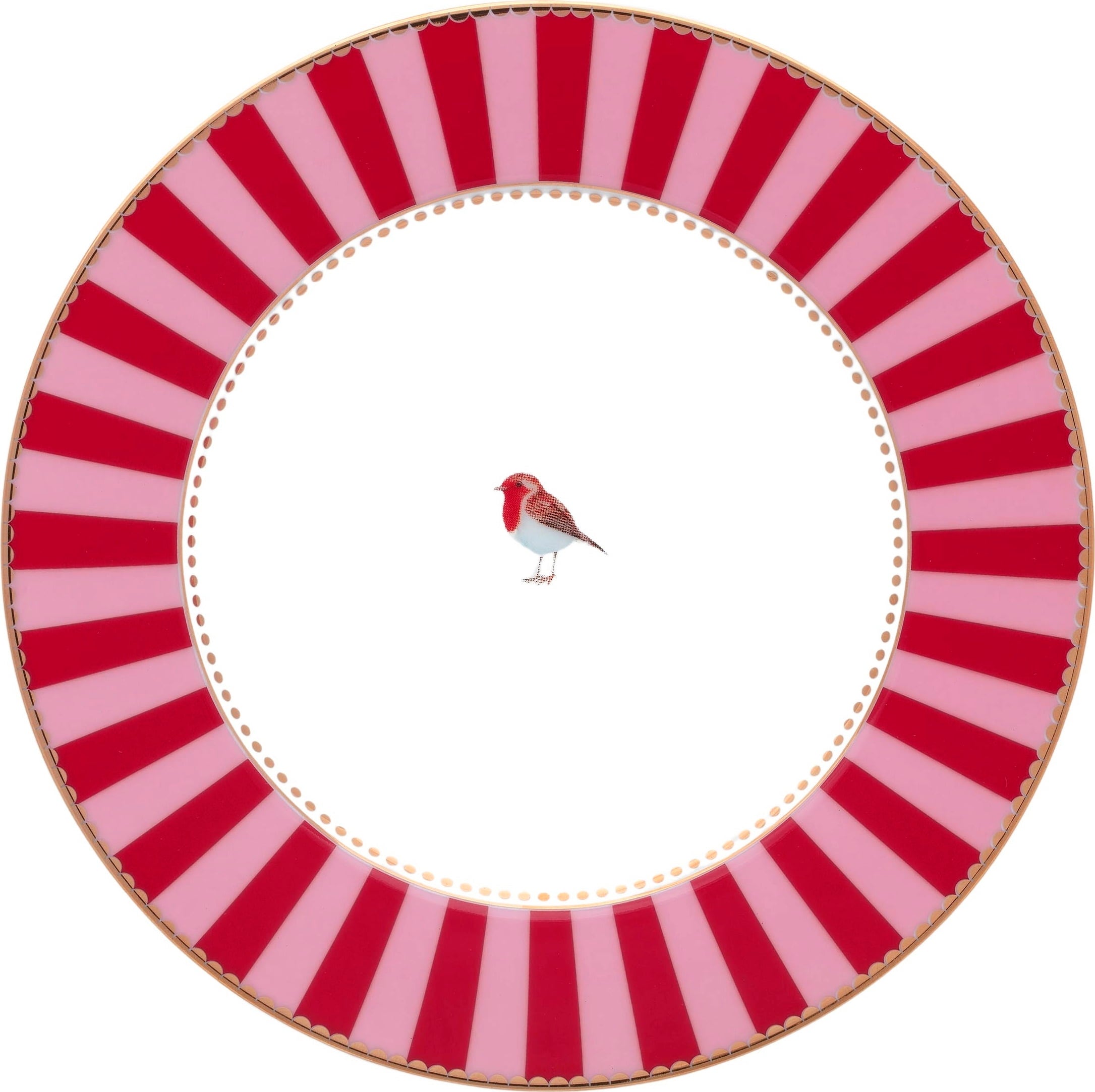 Pip Studio Love Birds - krožnik Stripes Red/Pink, 17 cm