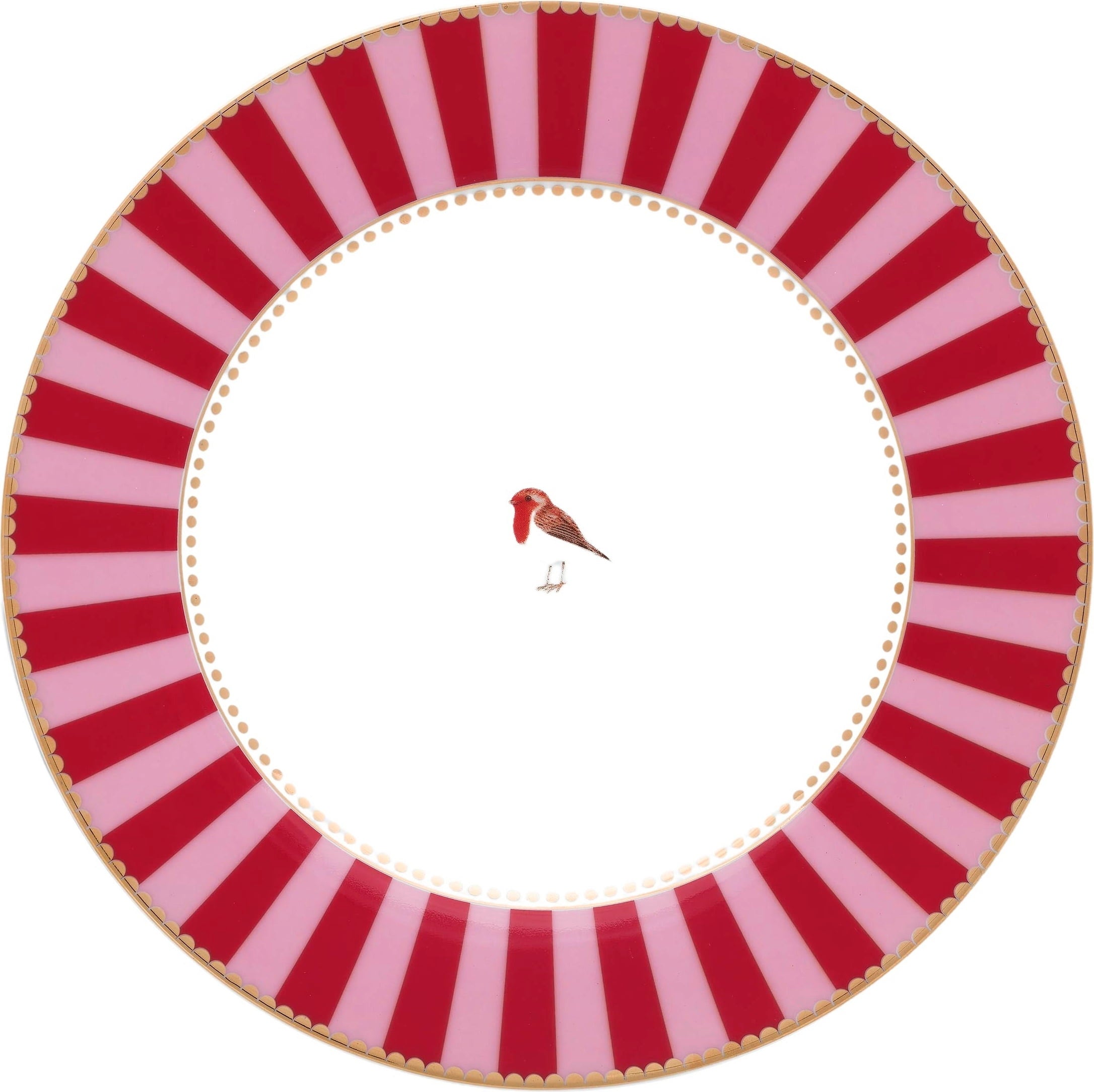 Pip Studio Love Birds - krožnik Stripes Red/Pink, 21 cm