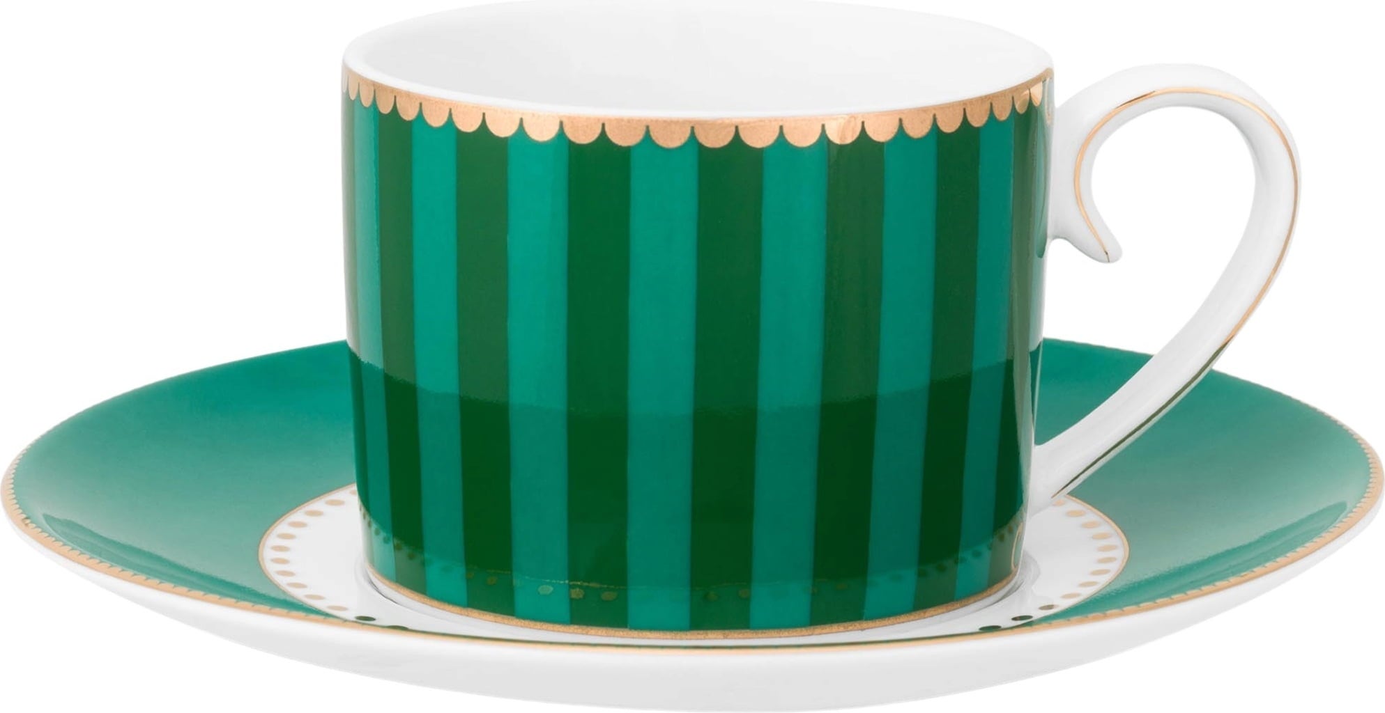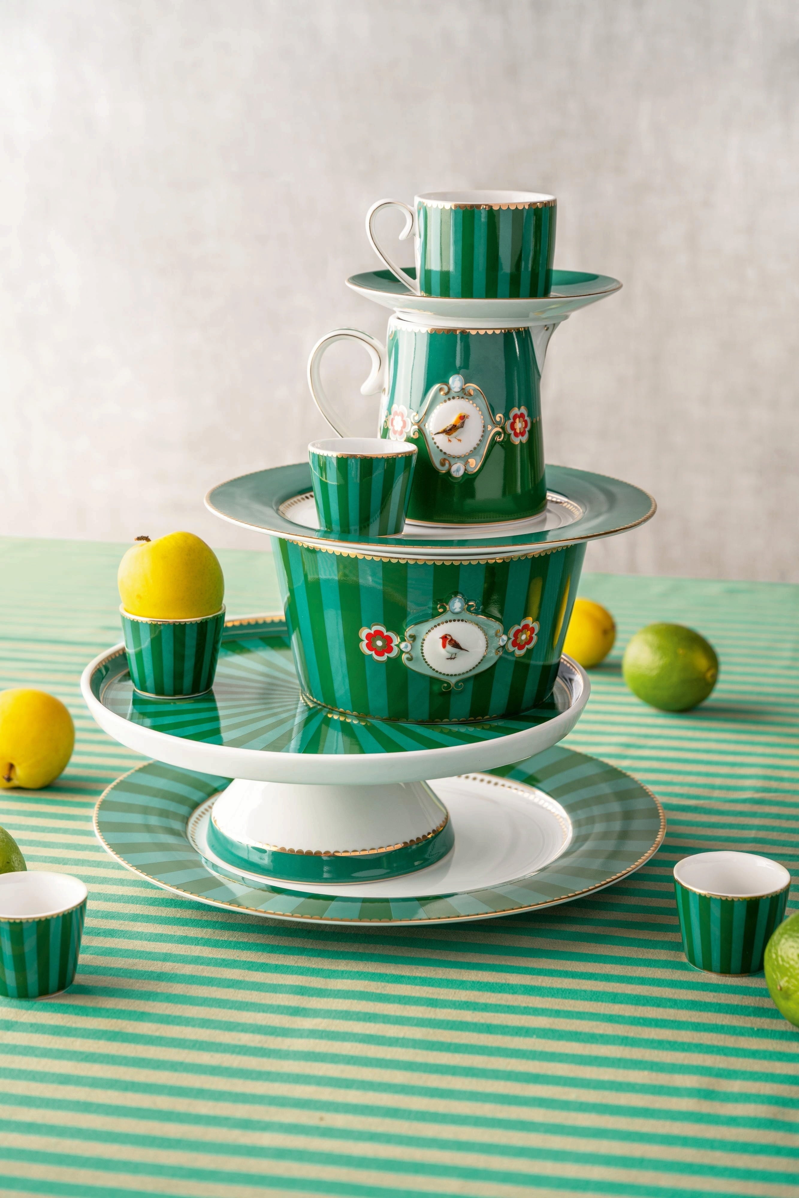 Pip Studio Love Birds - skodelica in krožnik, črte, Zelena (125 ml)