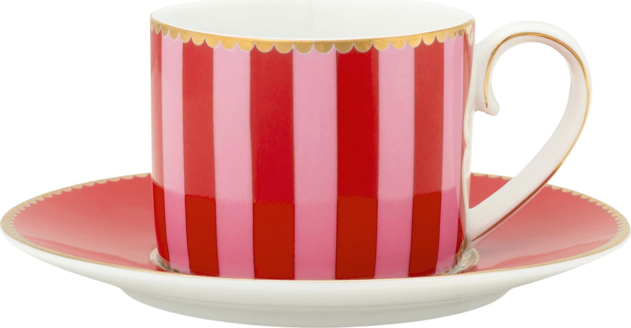 Pip Studio Love Birds - skodelica in krožnik, črte, Rdeča/roza (125 ml)