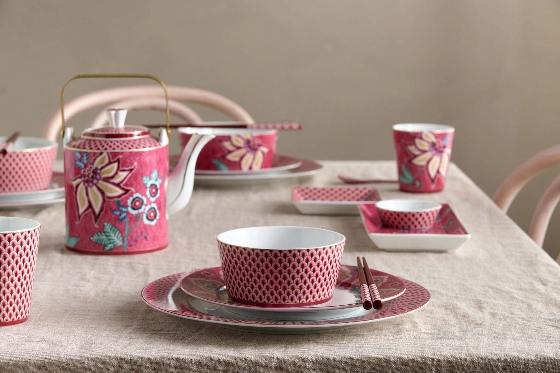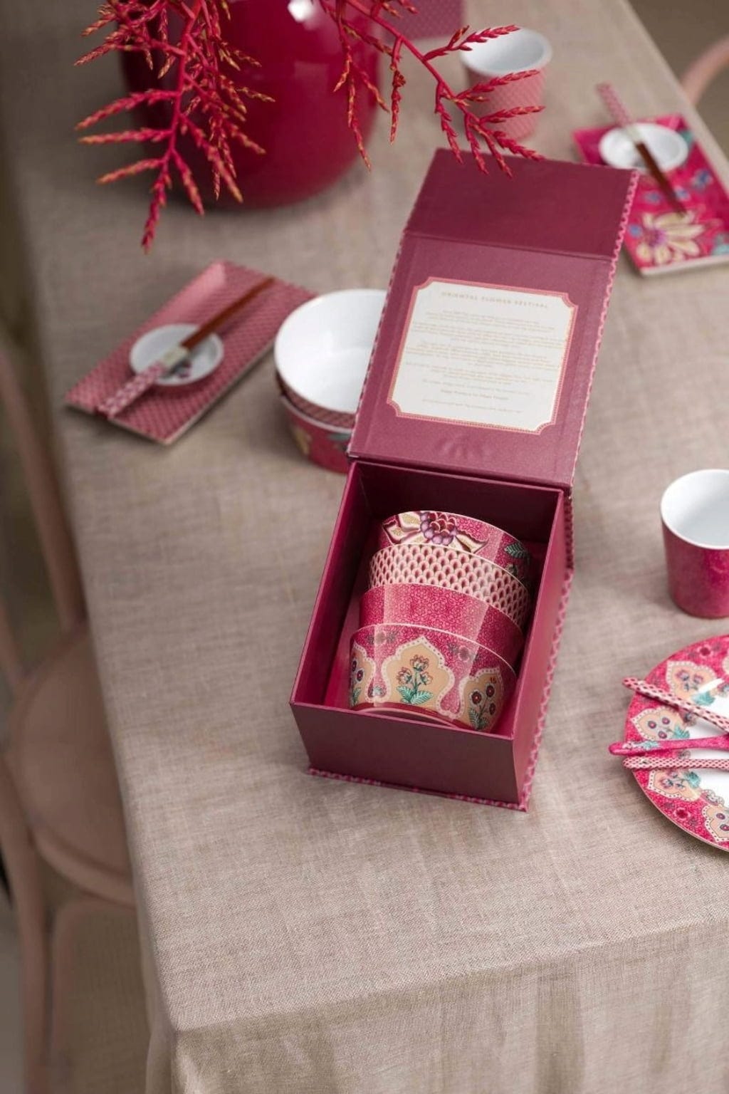Pip Studio Oriental Flower Festival - darilni set 4 skodelic, Pink